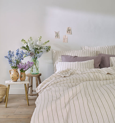 Offering a fresh take on vintage styles, we're thrilled to unveil our first ranges of ticking stripe and checked stripe linen bedding, made in Portugal from soft and breathable European linen. And for our gingham fans, you'll be pleased to know our obsession is here to stay! We're adding to the range with three new colours for spring: Honey, Mineral Red and Mushroom.
