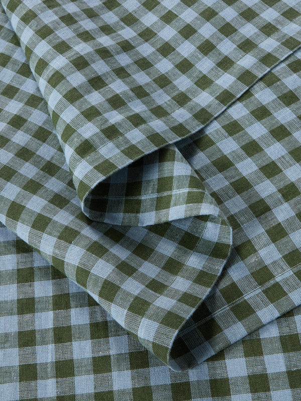 Mushroom Gingham 100% Linen Duvet Cover