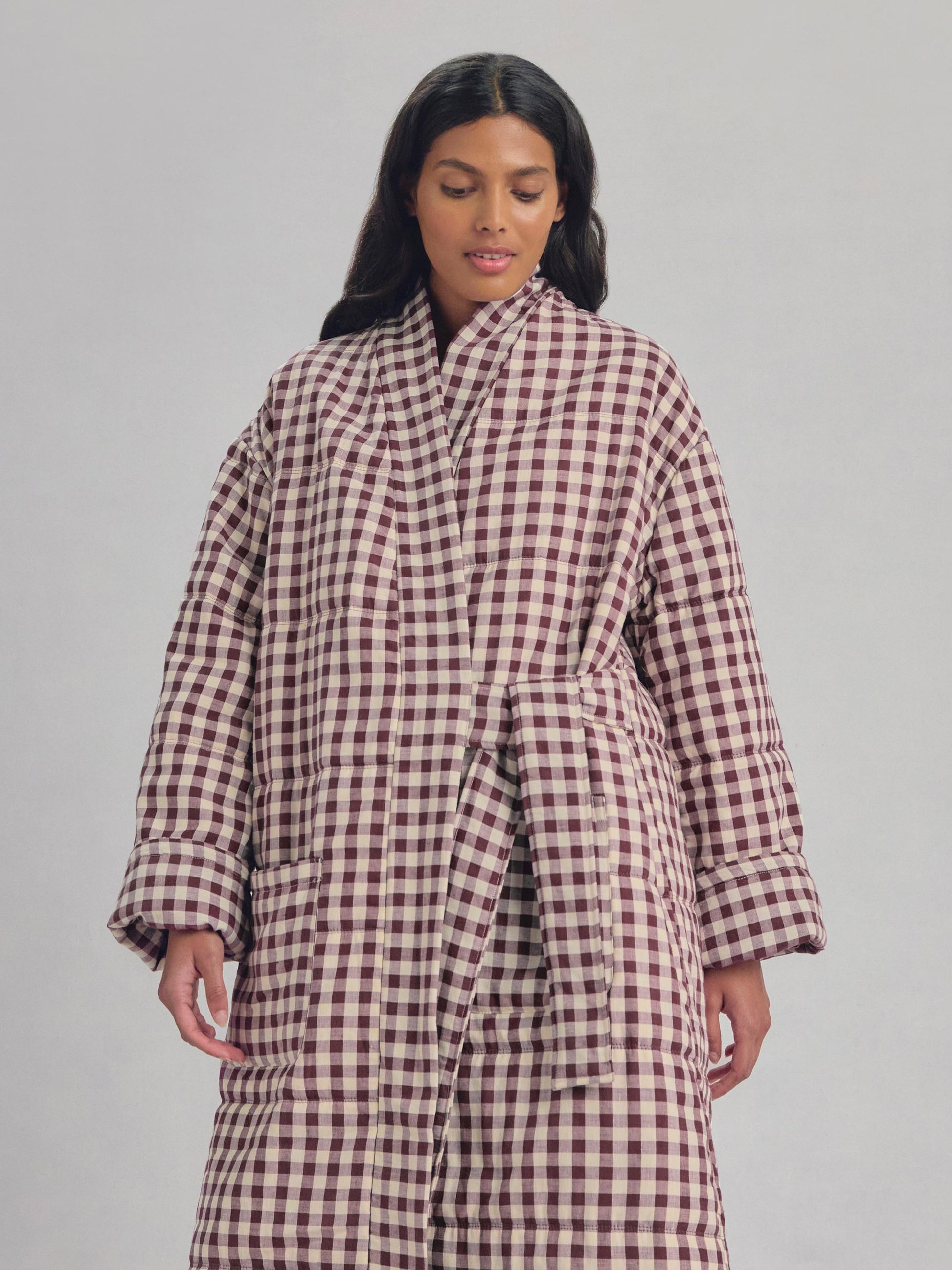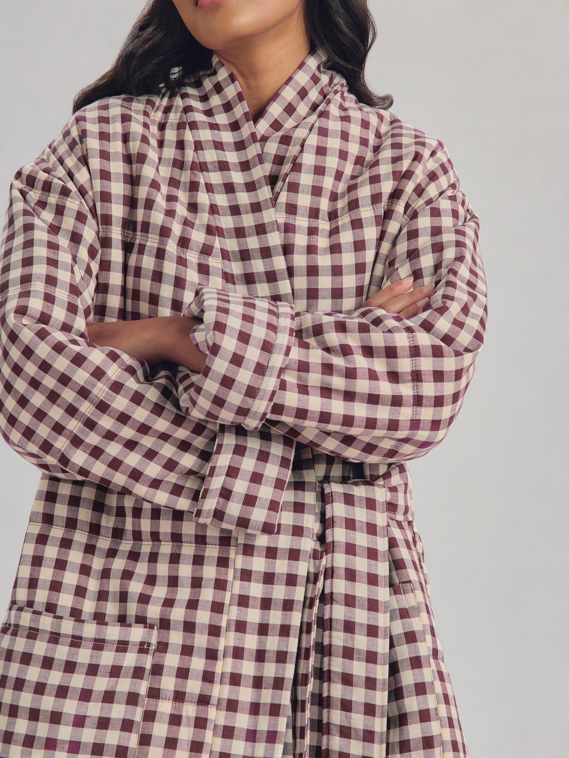 In classic Berry Gingham, this linen blend housecoat is made for cozy moments – from crisp mornings to laid-back evenings. With its oversized style, quilted design and practical pockets, it’s loungewear you’ll reach for every day.