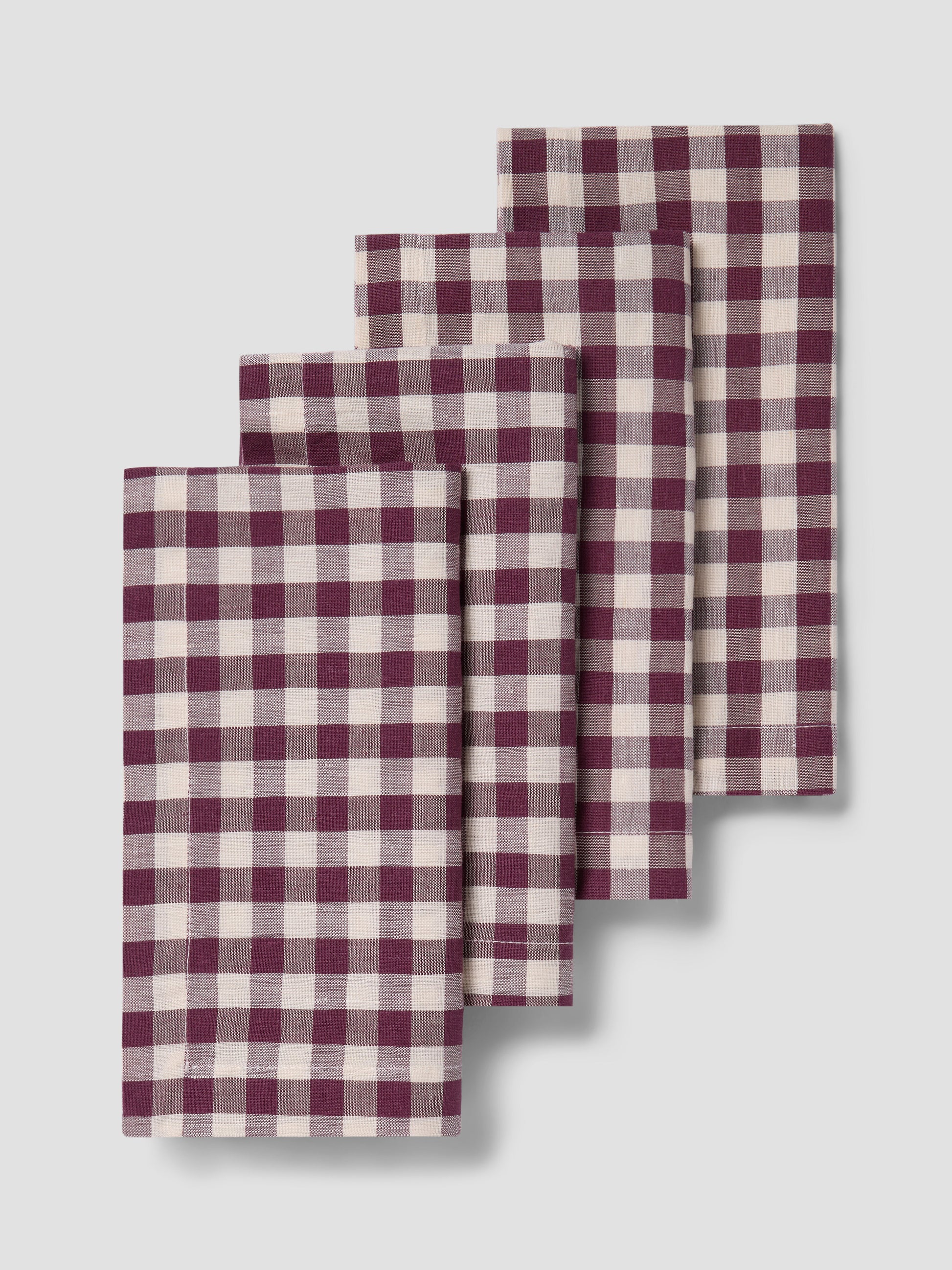 Bring modern cottagecore charm to your dining table with our rich Berry Gingham linen blend napkins. Woven from European flax and long staple cotton, our table linens have a relaxed look and feel with a super-soft finish. Complete your dining table look with the rest of our linen tableware range, including tablecloths and table runners.