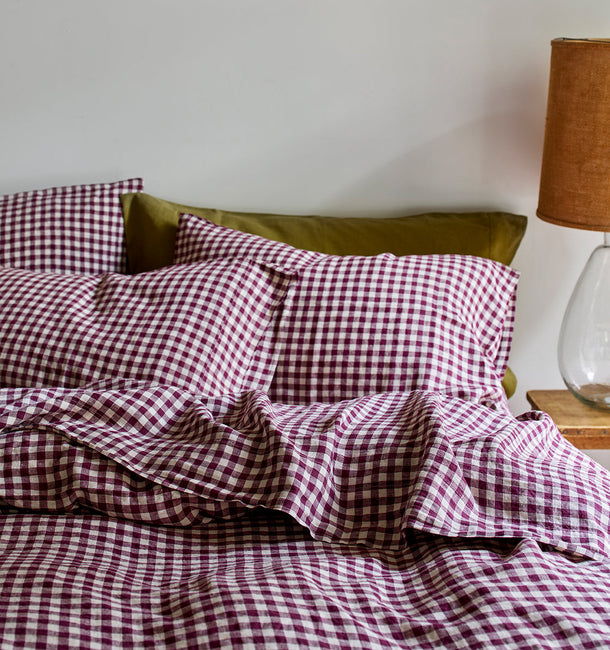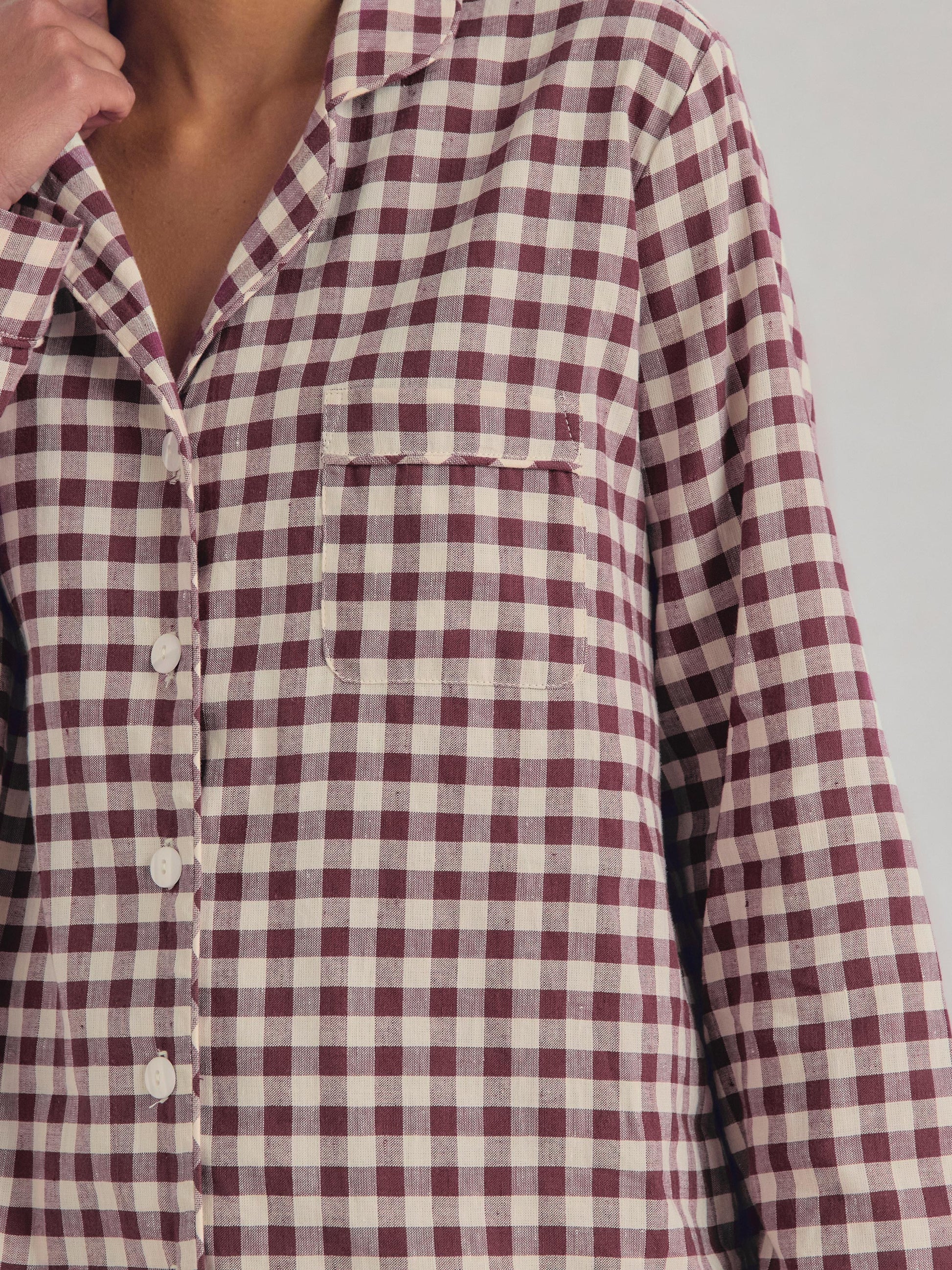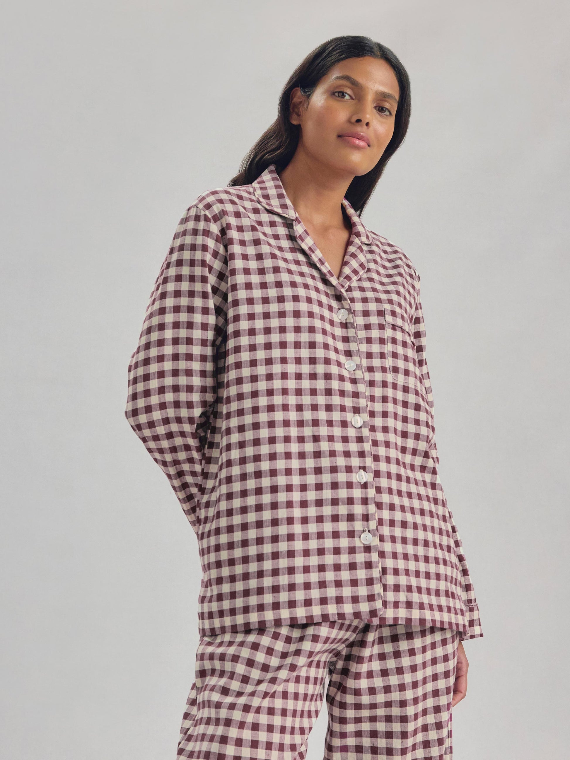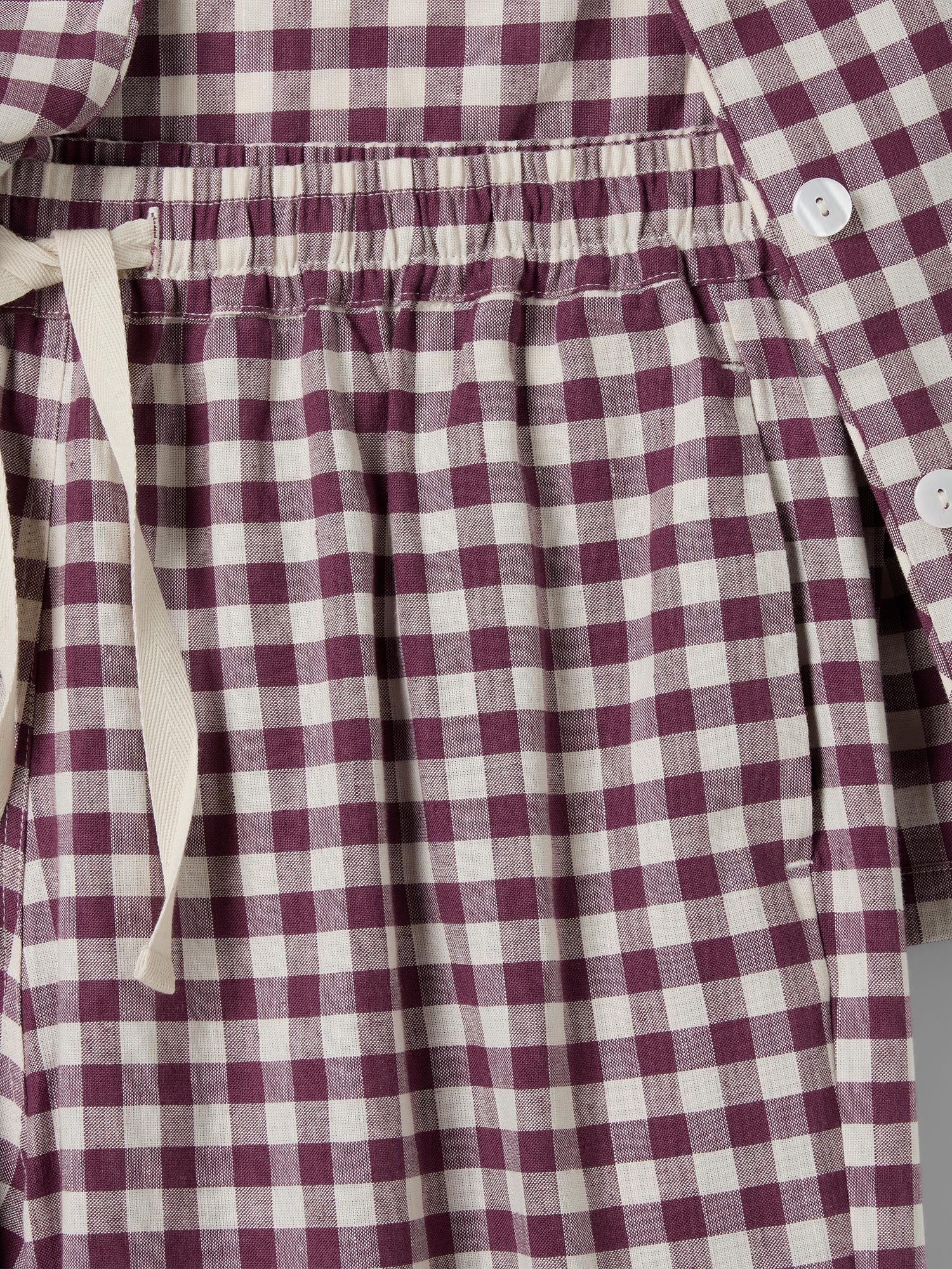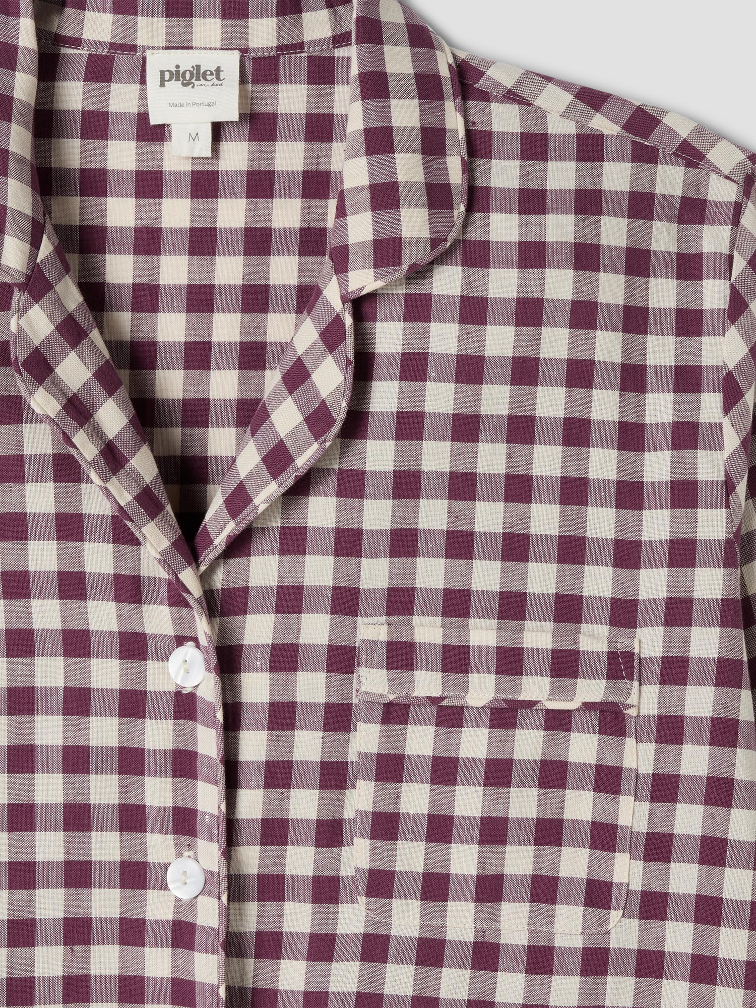 Made for easy, breathable wear, our Berry Gingham linen blend pajama trouser set will have you waking up feeling refreshed and ready to seize the day. Combining the laid-back look of linen with the gentle softness of cotton in our beloved gingham pattern, these pajamas are destined to become your new nighttime favorite.