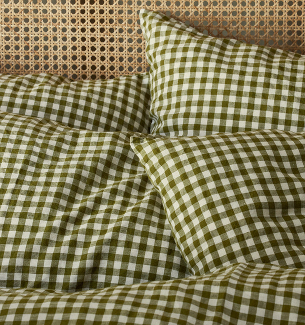 Add a touch of modern cottagecore style to your bedroom with our Botanical Green Gingham 100% linen bed skirt. Featuring our signature gingham pattern, this classic gathered skirt drapes beautifully with its soft frills. Our bed skirts have a 15-inch drop from the base to the floor and come in four sizes for twin, full, queen and king beds.