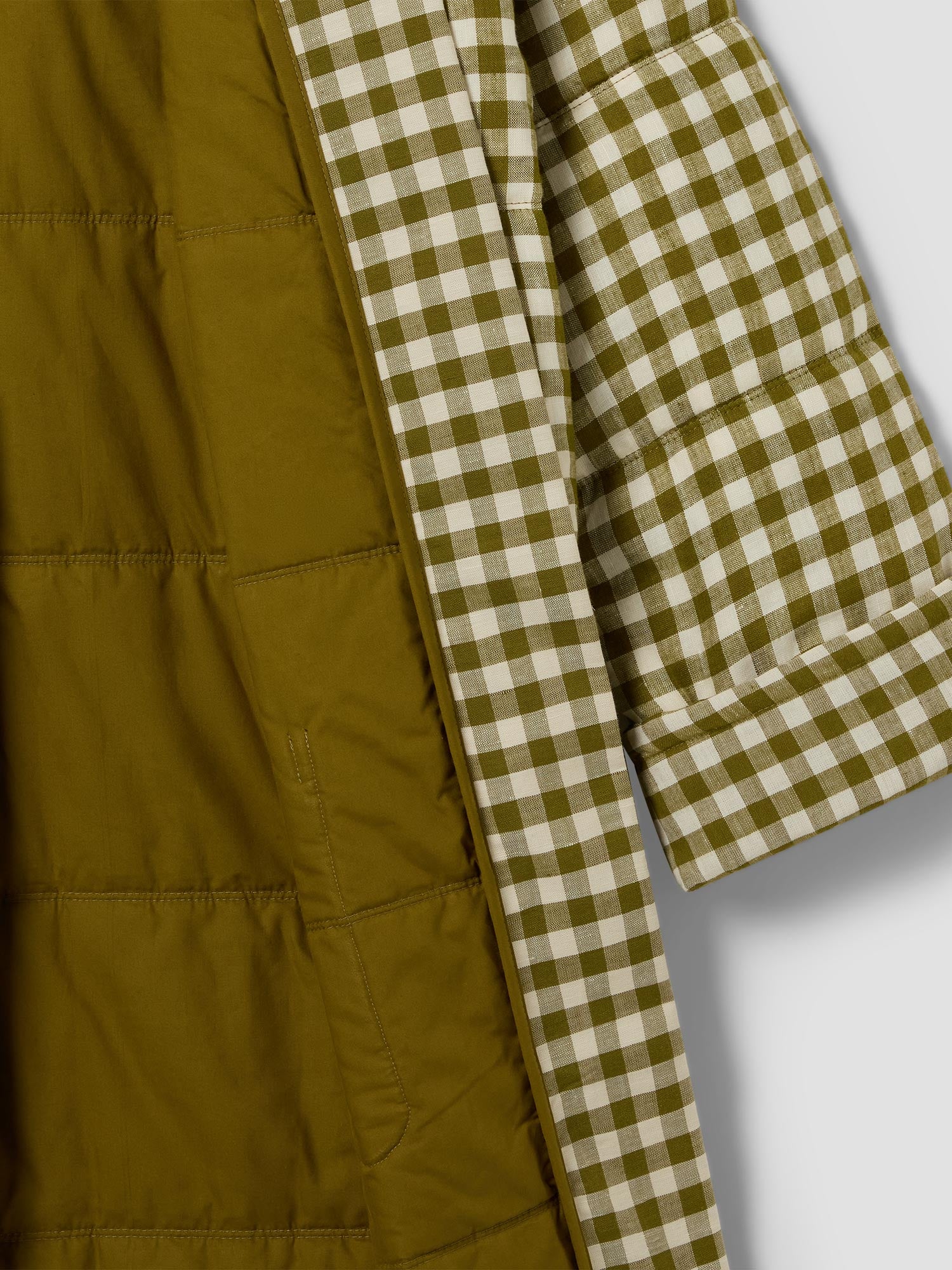 In earthy Botanical Green Gingham, this linen blend housecoat is made for cozy moments – from crisp mornings to laid-back evenings. With its oversized style, quilted design and practical pockets, it’s loungewear you’ll reach for every day.