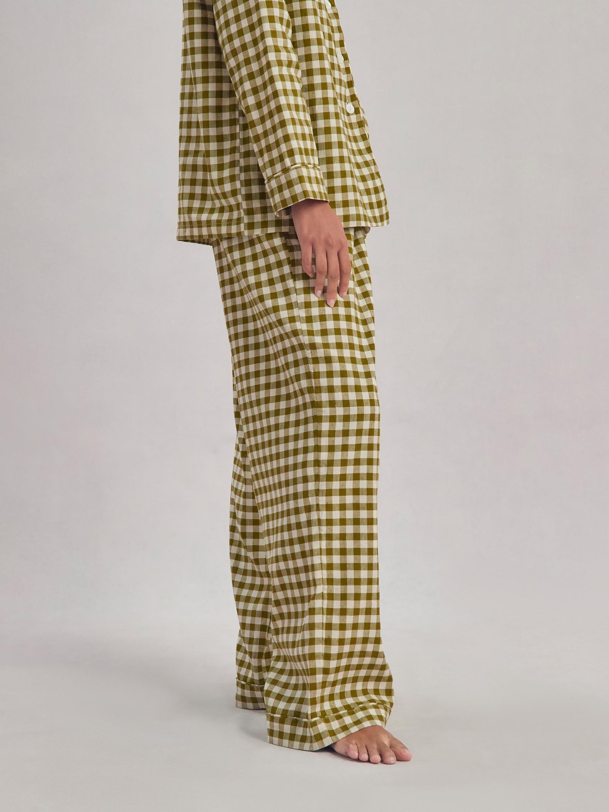 Made for easy, breathable wear, our Botanical Green Gingham linen blend pajama trouser set will have you waking up feeling refreshed and ready to seize the day. Combining the laid-back look of linen with the gentle softness of cotton in our beloved gingham pattern, these pajamas are destined to become your new nighttime favorite.