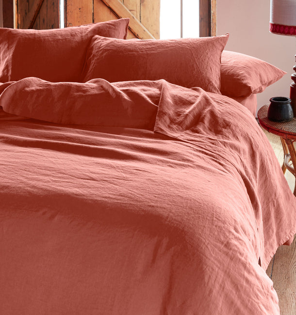 A rich and earthy shade, our Burnt Orange linen blend fitted sheet is perfect for bringing a sense of coziness and warmth to your bedroom space. Made from only the highest-quality fibers, the breathable fabric combines the effortless look of linen with the softness of cotton. Our fitted sheets have elasticated edges all the way around and fit mattresses up to 16 inches deep.