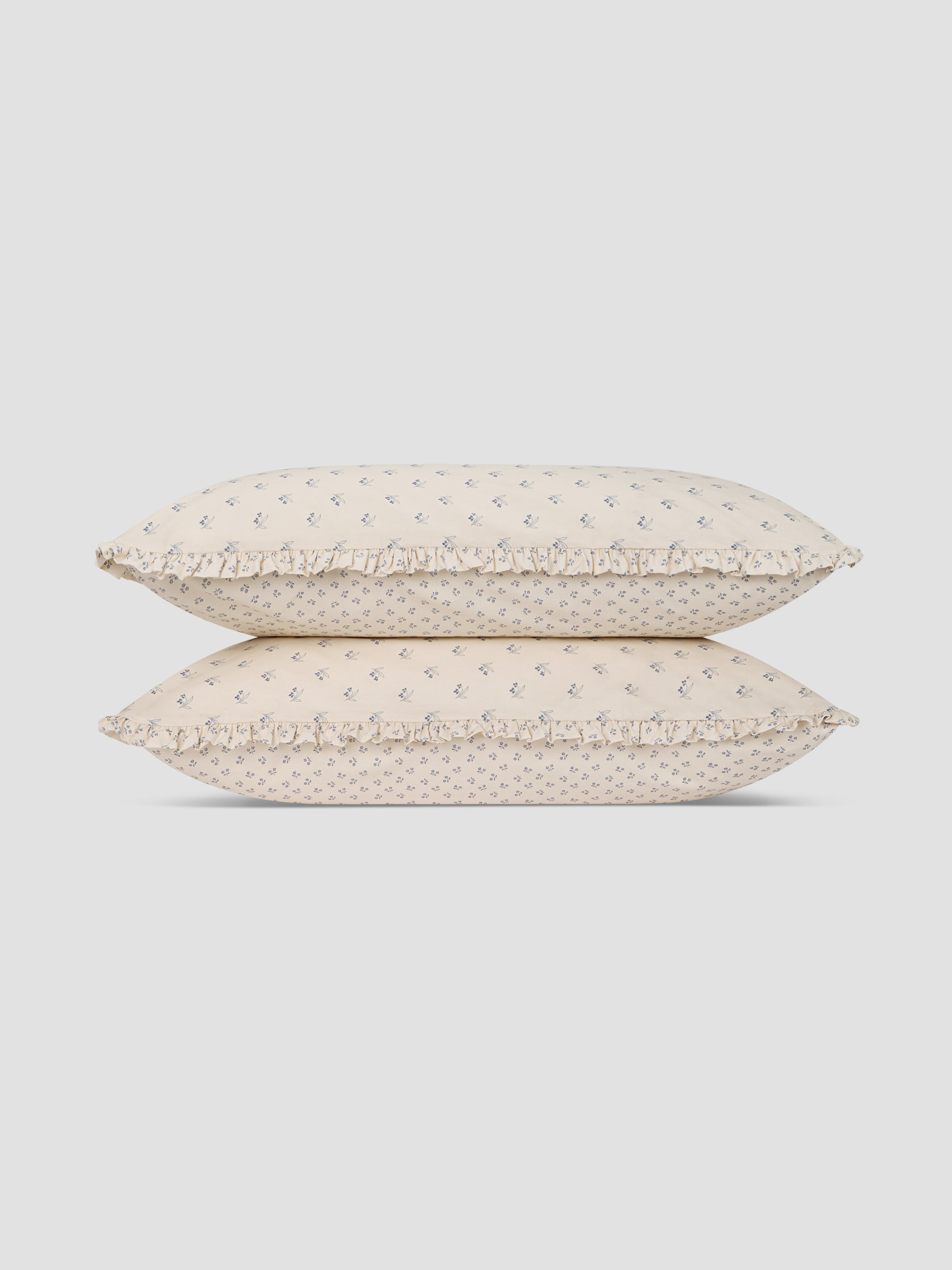 Cove Blue Martha Floral Cotton Frill Pillowcases (Pair)