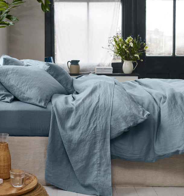 Dusk Blue Linen Blend Duvet Set