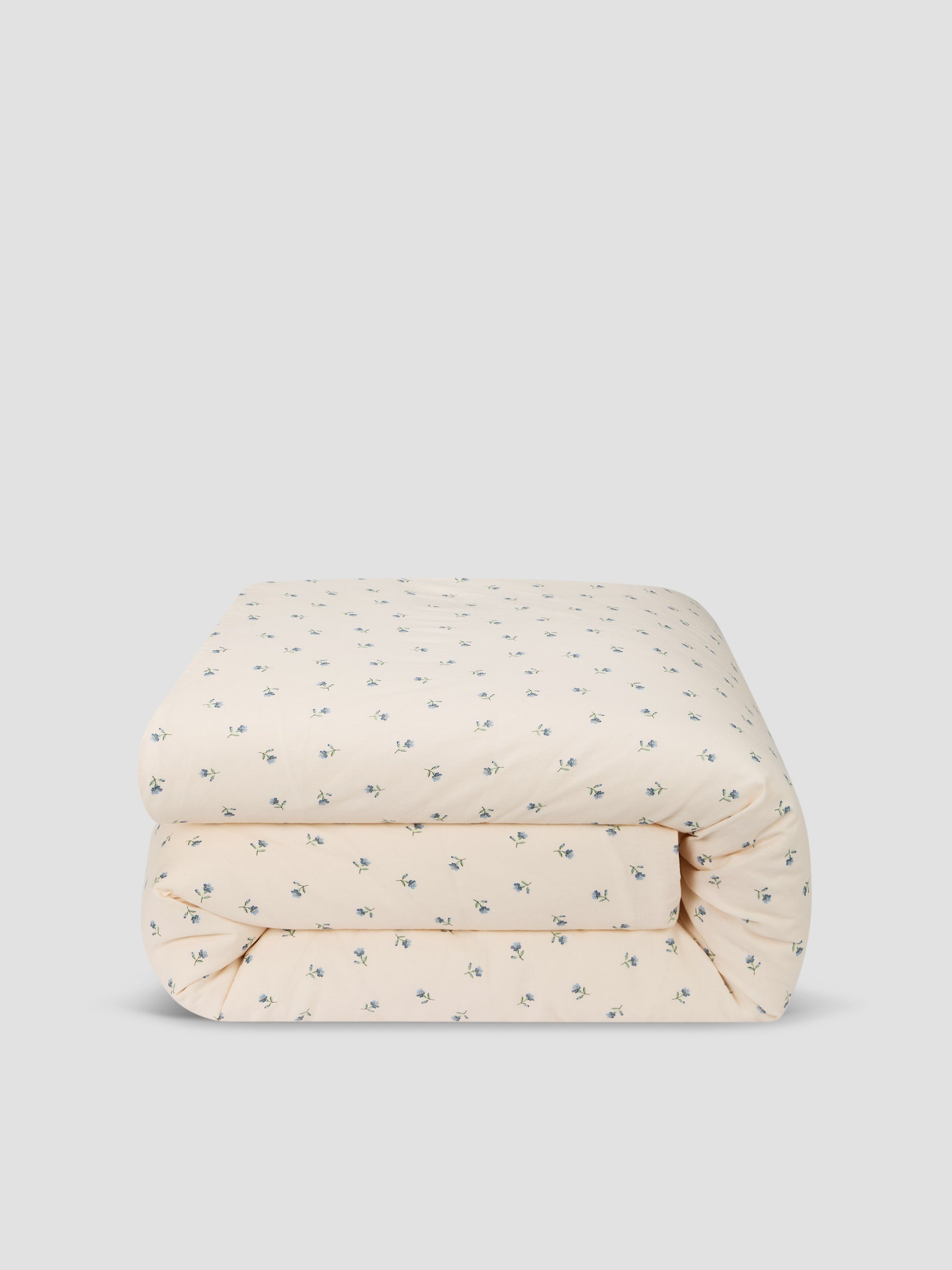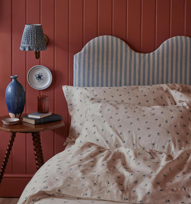 Romantic, whimsical and dotted with delicate flowers, our Dusk Blue Posy Bud linen blend duvet cover features a reimagined vintage pattern from the Susanna Samson Design archives. Made from only the highest-quality fibers, the breathable fabric combines the effortless look of linen with the softness of cotton. Our linen blend duvet covers are finished with coconut shell button fastenings and feature handy inside corner ties to stop your duvet from slipping.