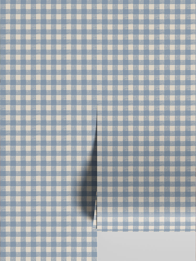 Dusty Blue Gingham Wallpaper