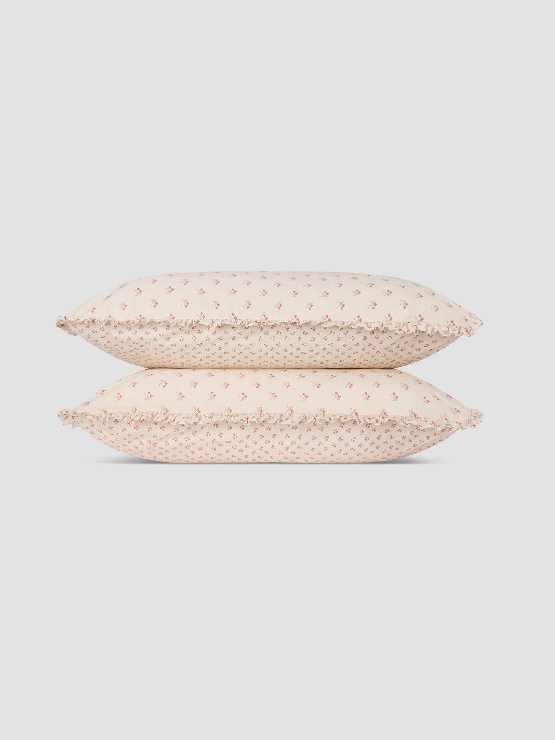 Dusty Pink Martha Floral Cotton Frill Pillowcases (Pair)