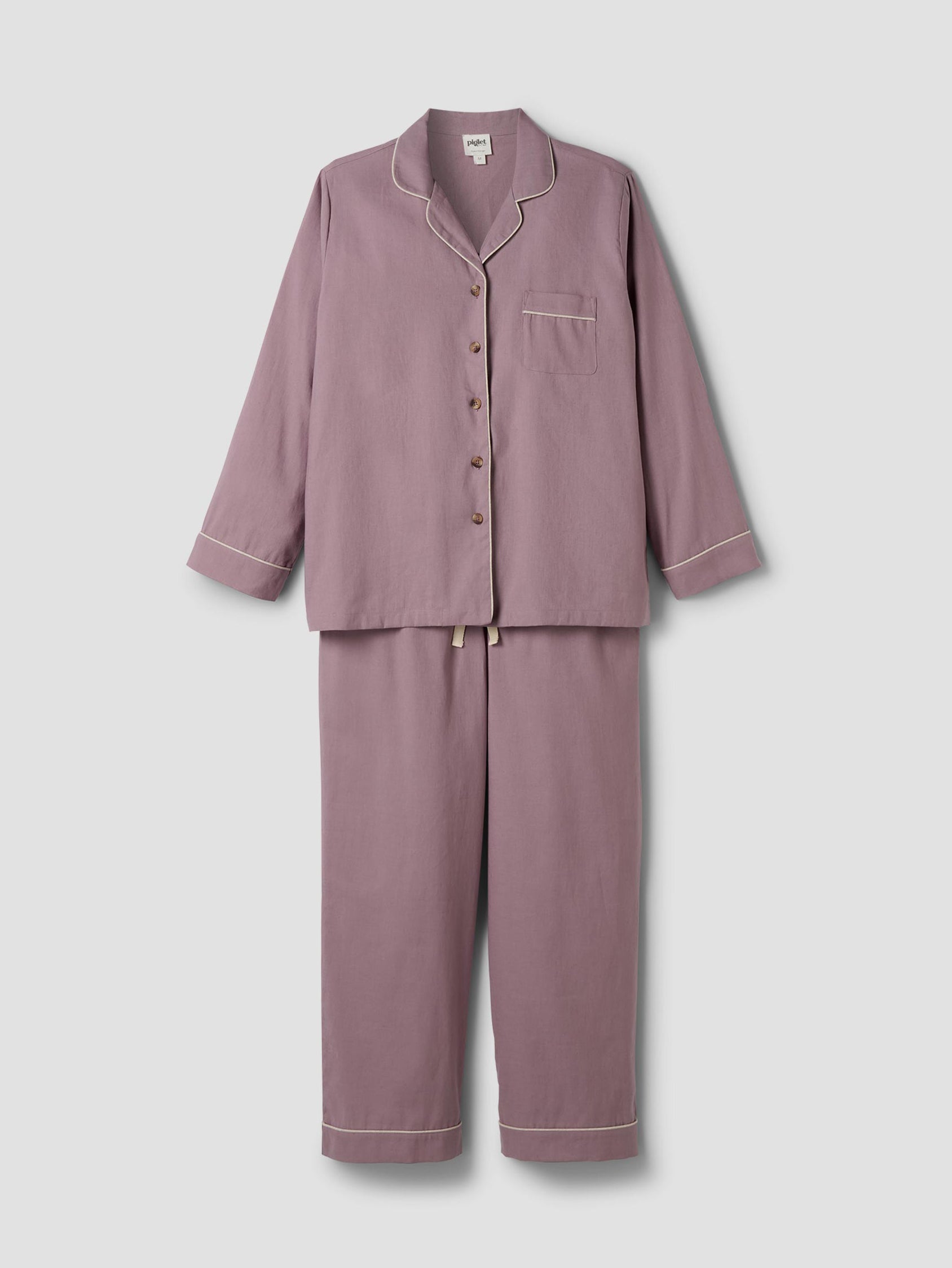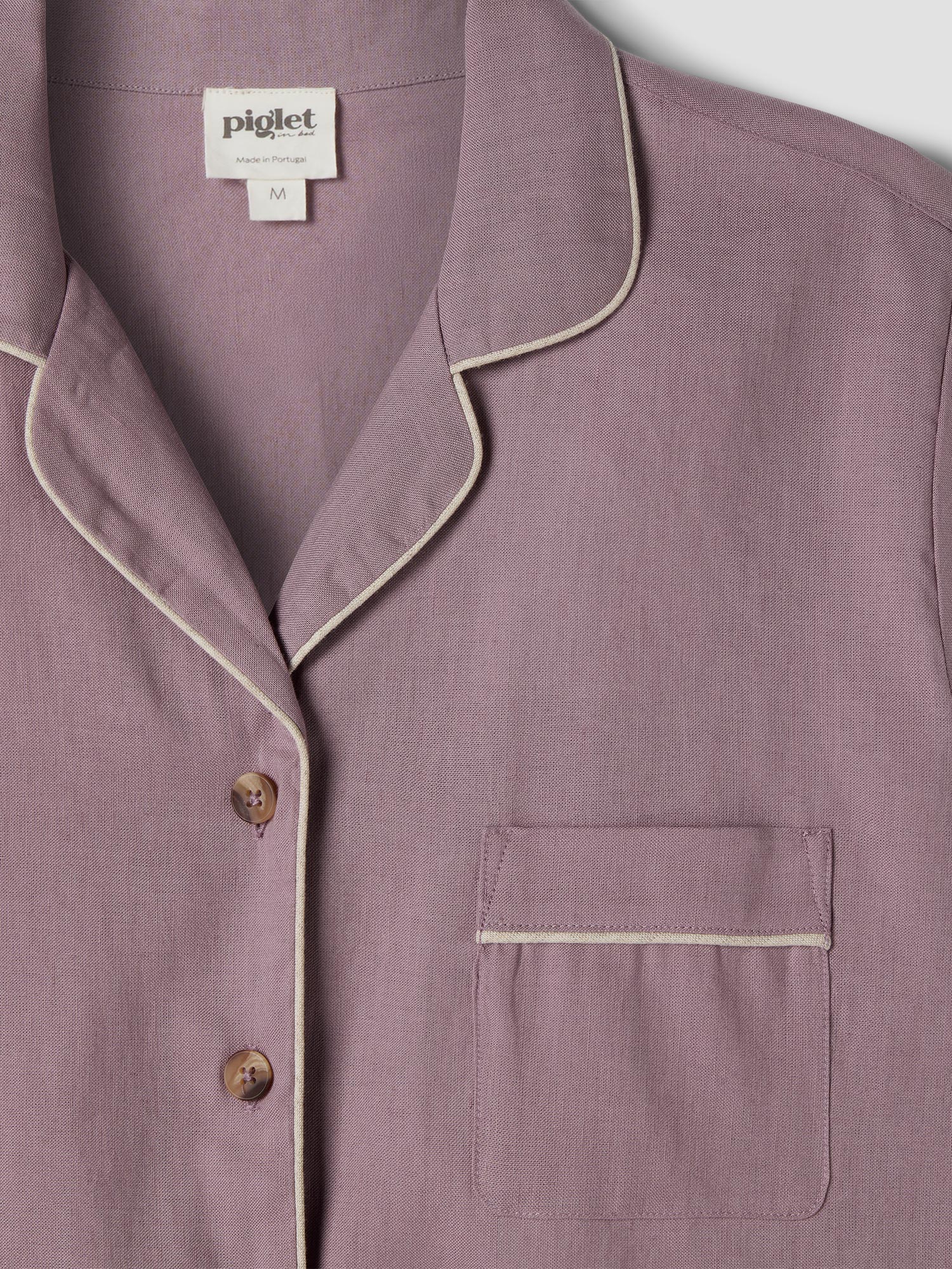 Made for easy, breathable wear, our Elderberry linen blend pajama trouser set will have you waking up feeling refreshed and ready to seize the day. Combining the laid-back look of linen with the gentle softness of cotton in our dusky purple hue, these pajamas are destined to become your new nighttime favorite.