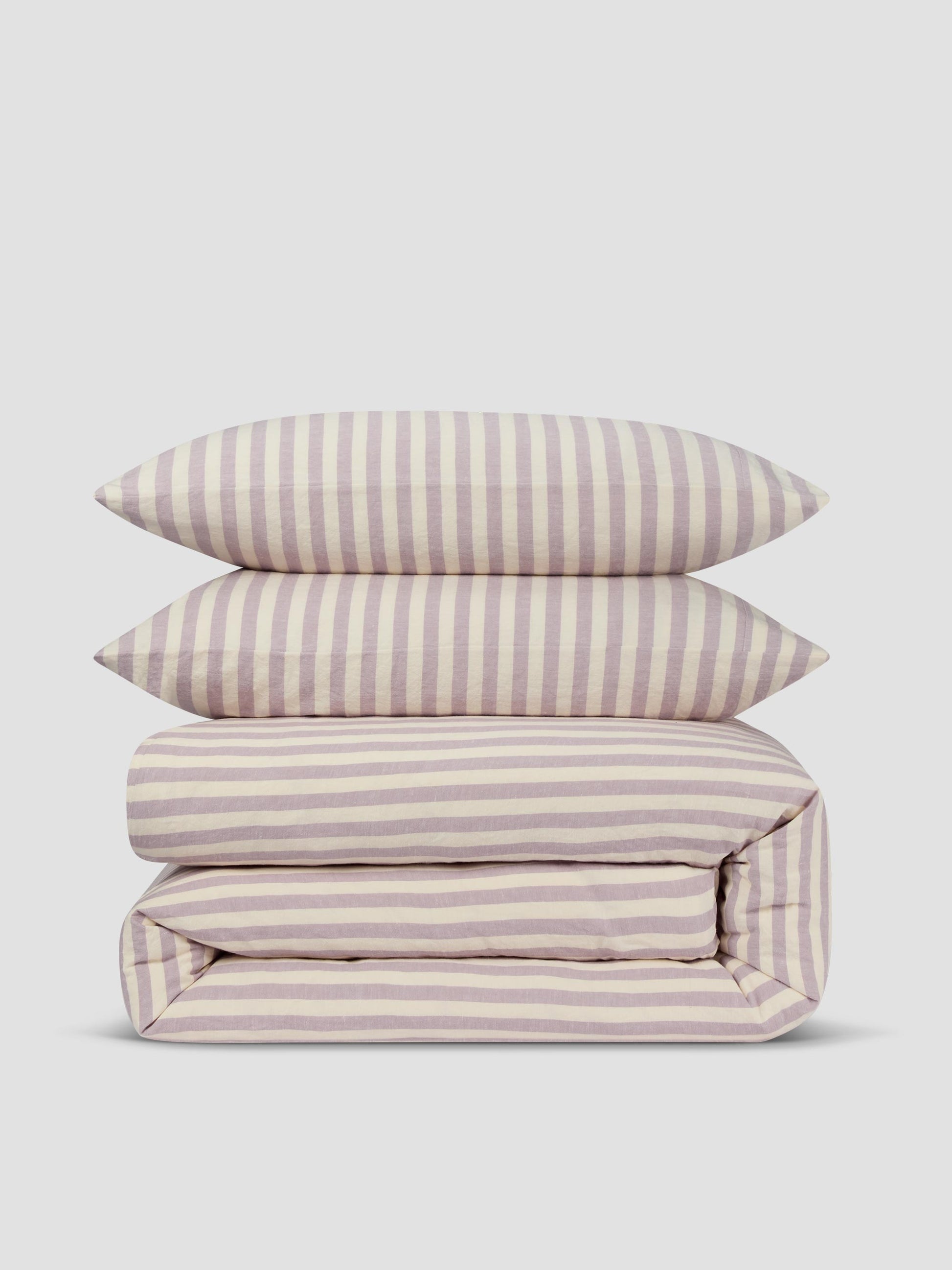 Elderberry Pembroke Stripe Linen Blend Duvet Set