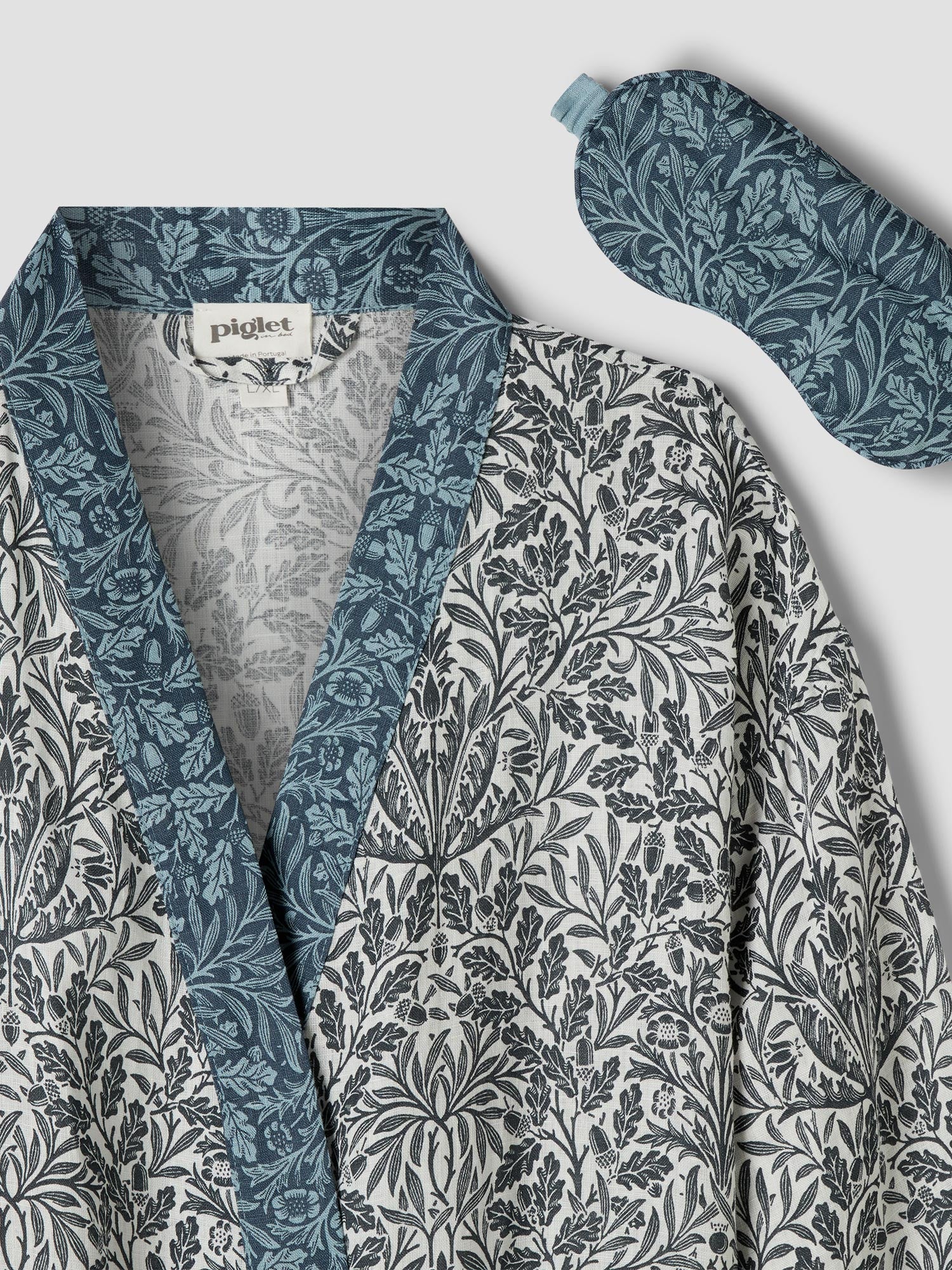 Designed in collaboration with Morris & Co., our Ernest Blue linen robe features the whimsical Acorn pattern created by William Morris in 1879. The classic motif pays homage to the brand’s rich heritage while faithfully reimagining it for modern living. To complete the set, this robe comes with a complimentary matching sleep mask – the perfect accessory for a restful night’s sleep.