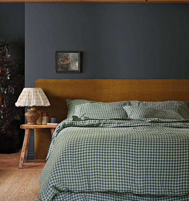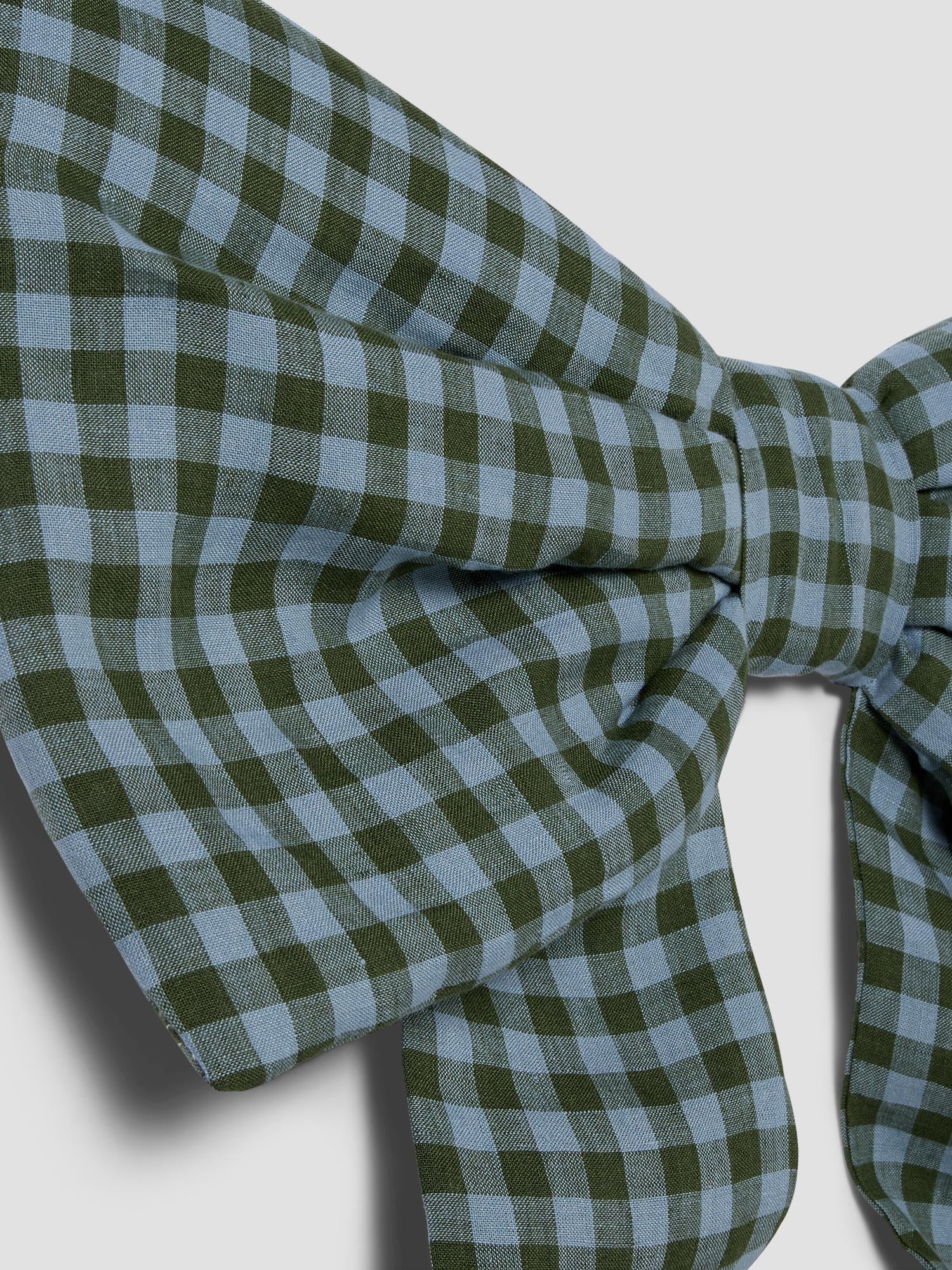 Fern Green & Dusk Blue Color Drenched Gingham Linen Blend Bow