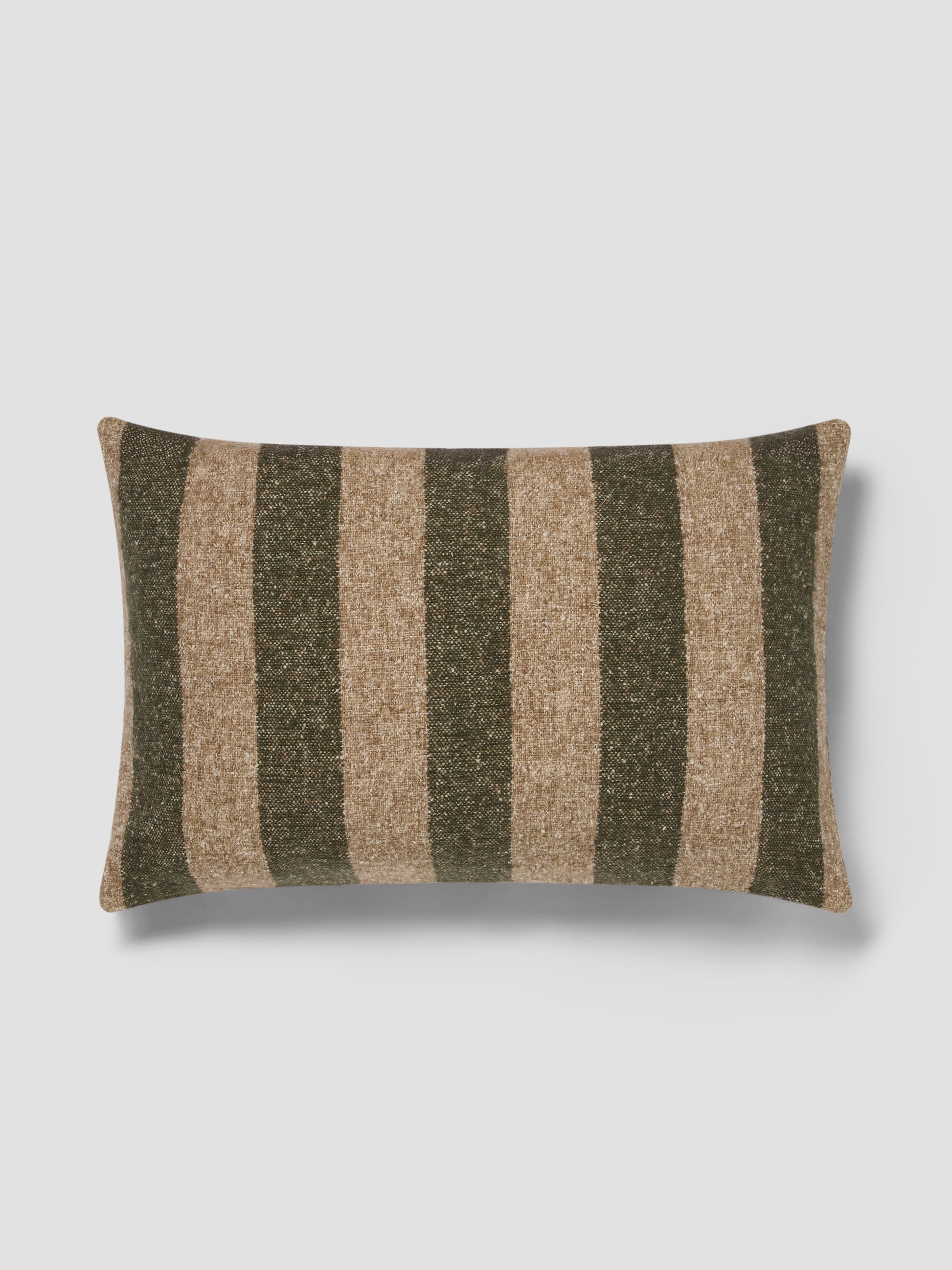 Fern Green & Oatmeal Wide Stripe Wool Rectangle Cushion Cover