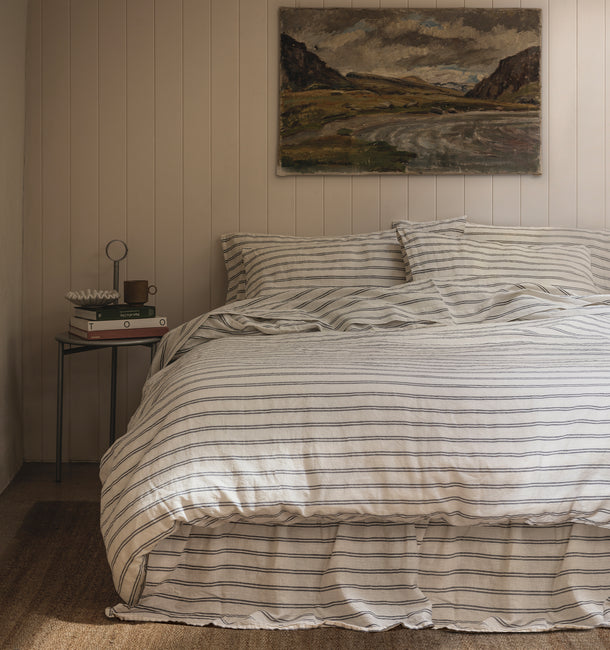 Woven with care in Guimarães in Northern Portugal, our linen blend bedding combines the breezy softness of high quality European flax with the smooth comfort of cotton. Made by a family-run mill with over a century of expertise, each piece carries the heritage of their historic hillside city, where rolling vineyards and lush greenery surround the looms. Using only the finest OEKO-Tex Standard 100 certified flax, our bedding is designed to be as beautiful to sleep in as it is to wake up to.