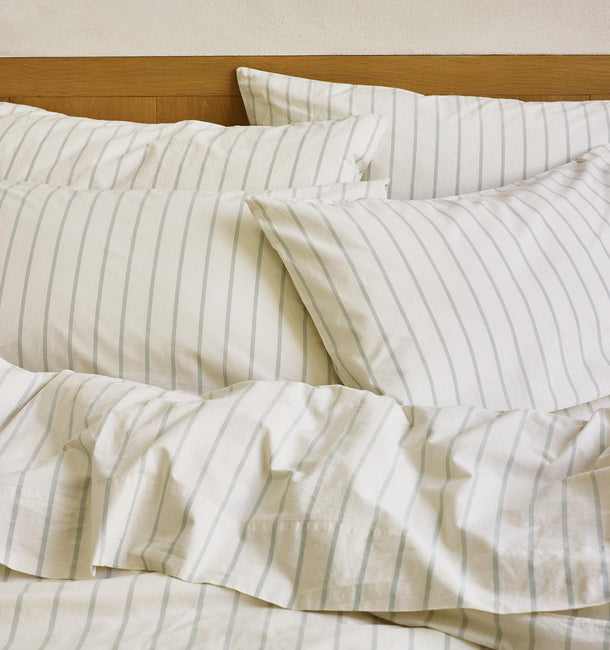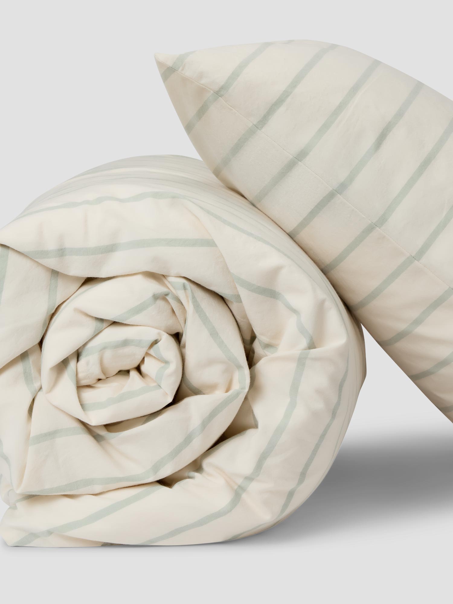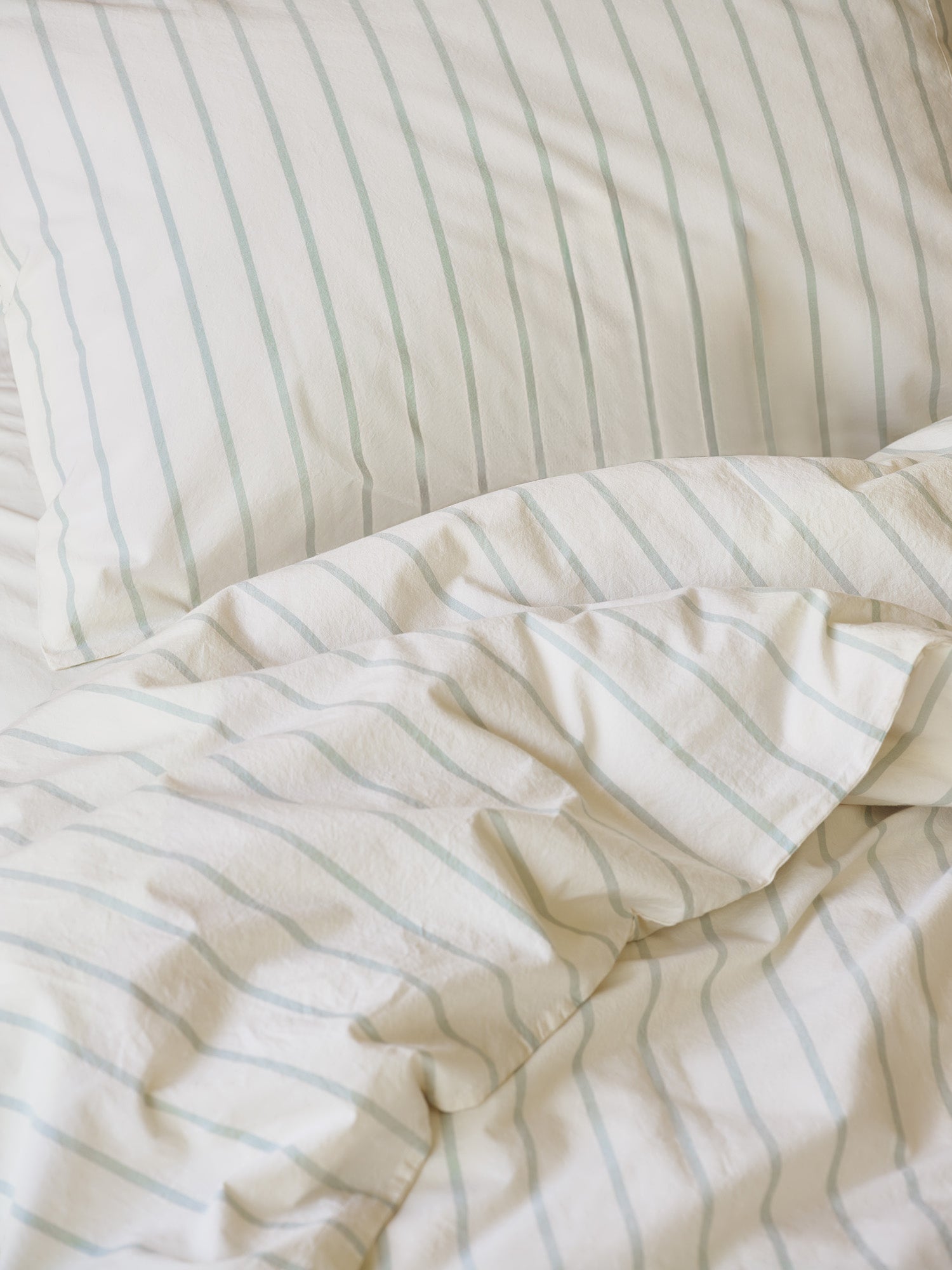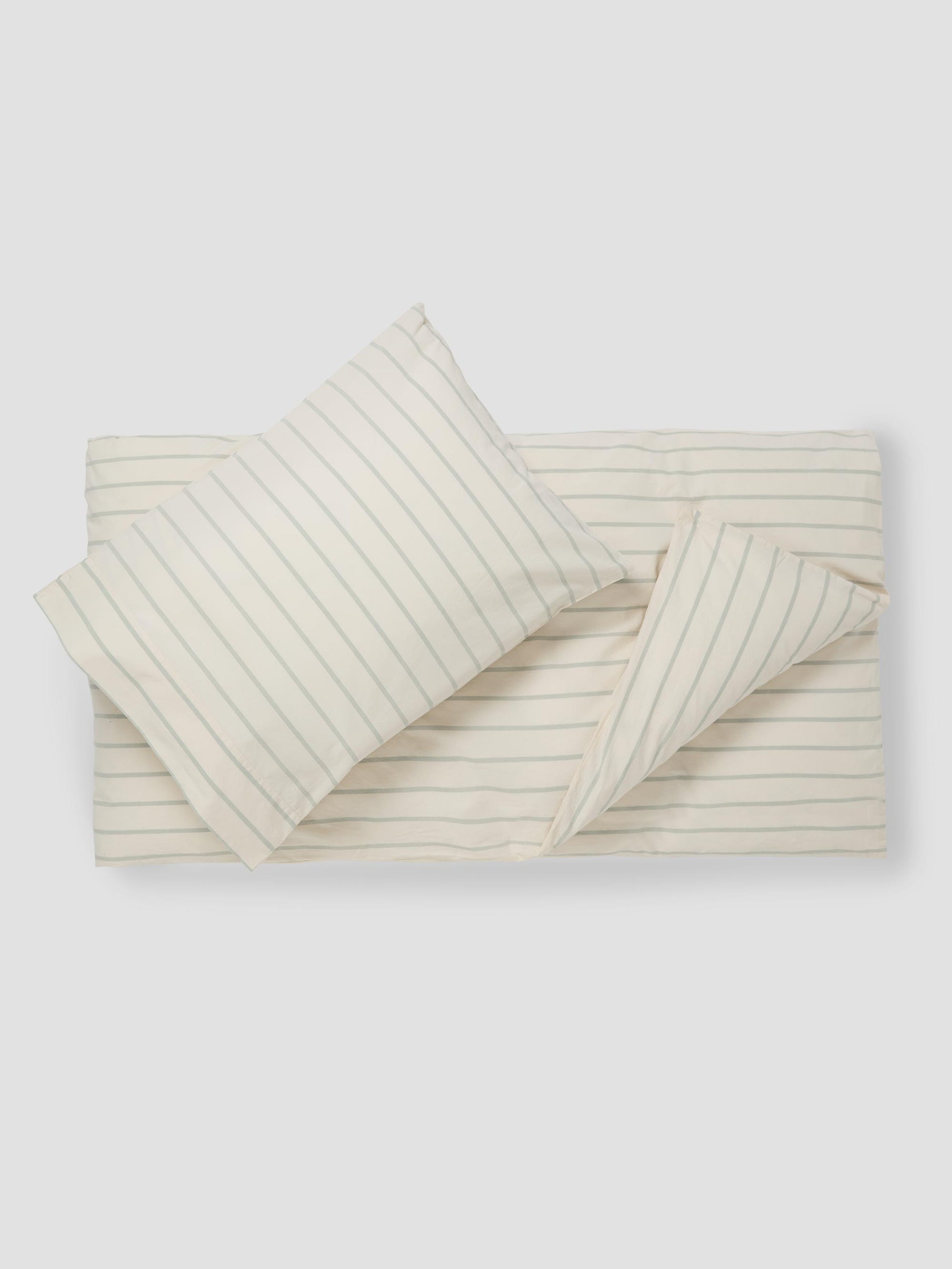 Create a playful yet sophisticated space for your little one with our mellow green kids slumber stripe cotton bedding set. Crafted from sustainably sourced cotton, our kids bedding has a super soft, breathable feel that’s gentle on even the most sensitive skin. The cot size duvet cover is designed with an internal flap, which closes inside the cover and holds the duvet in place. The twin size duvet cover features natural corozo buttons, so to ensure children's safety, please fasten the buttons inside.
