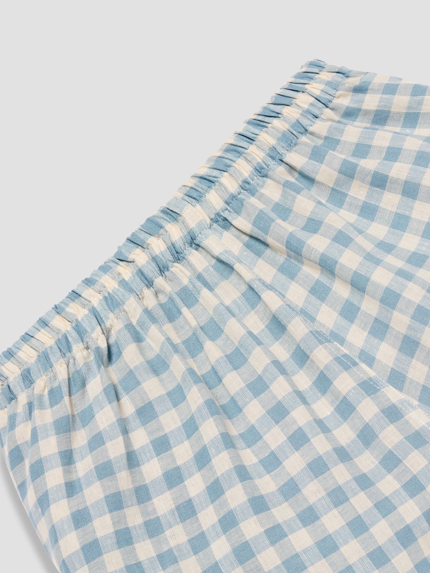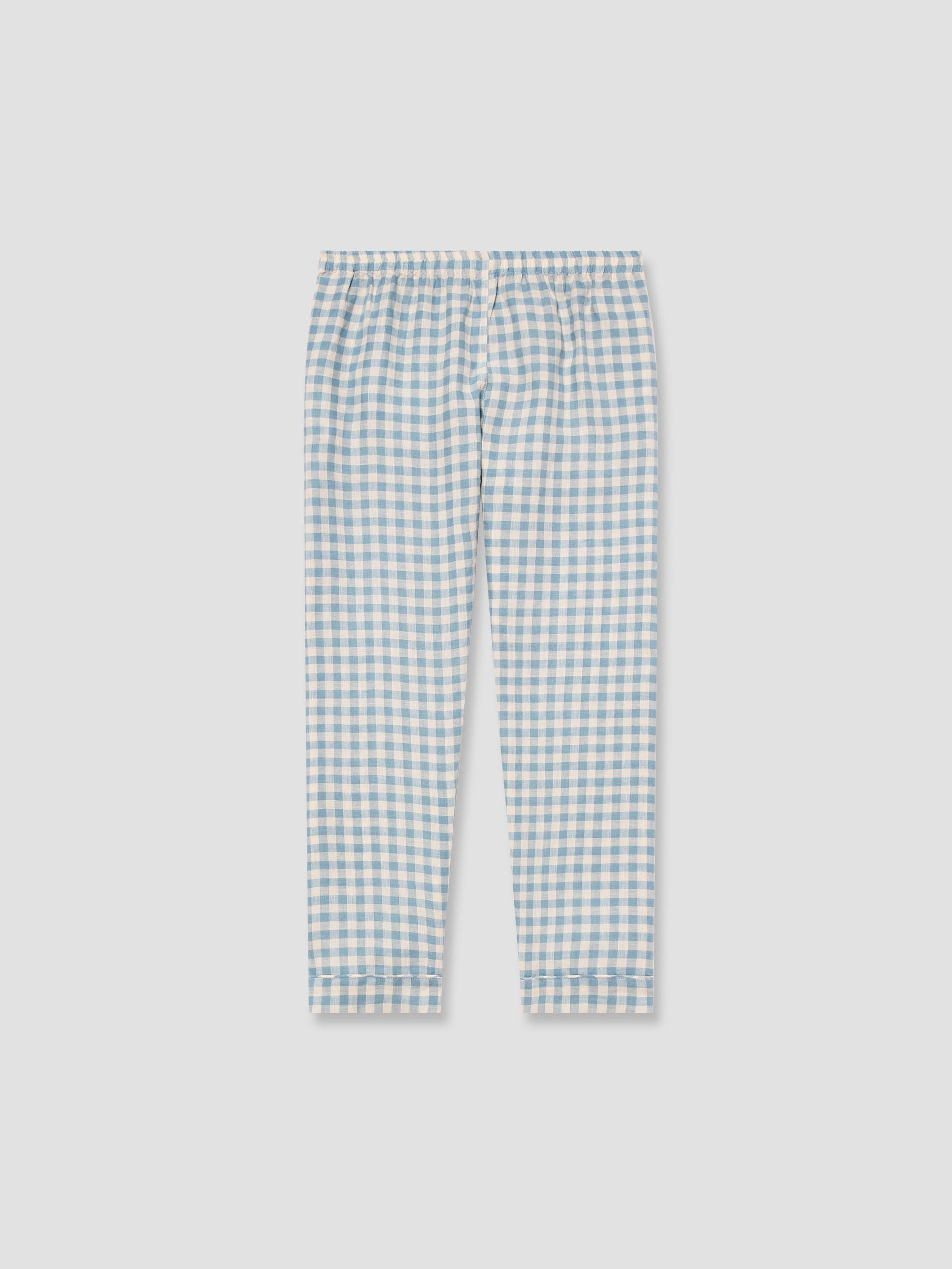 Men's Warm Blue Gingham Linen Pajama Pants Set