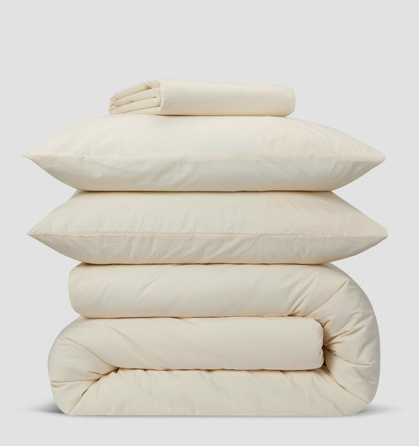 Mindful Cream Washed Cotton Percale Duvet Cover