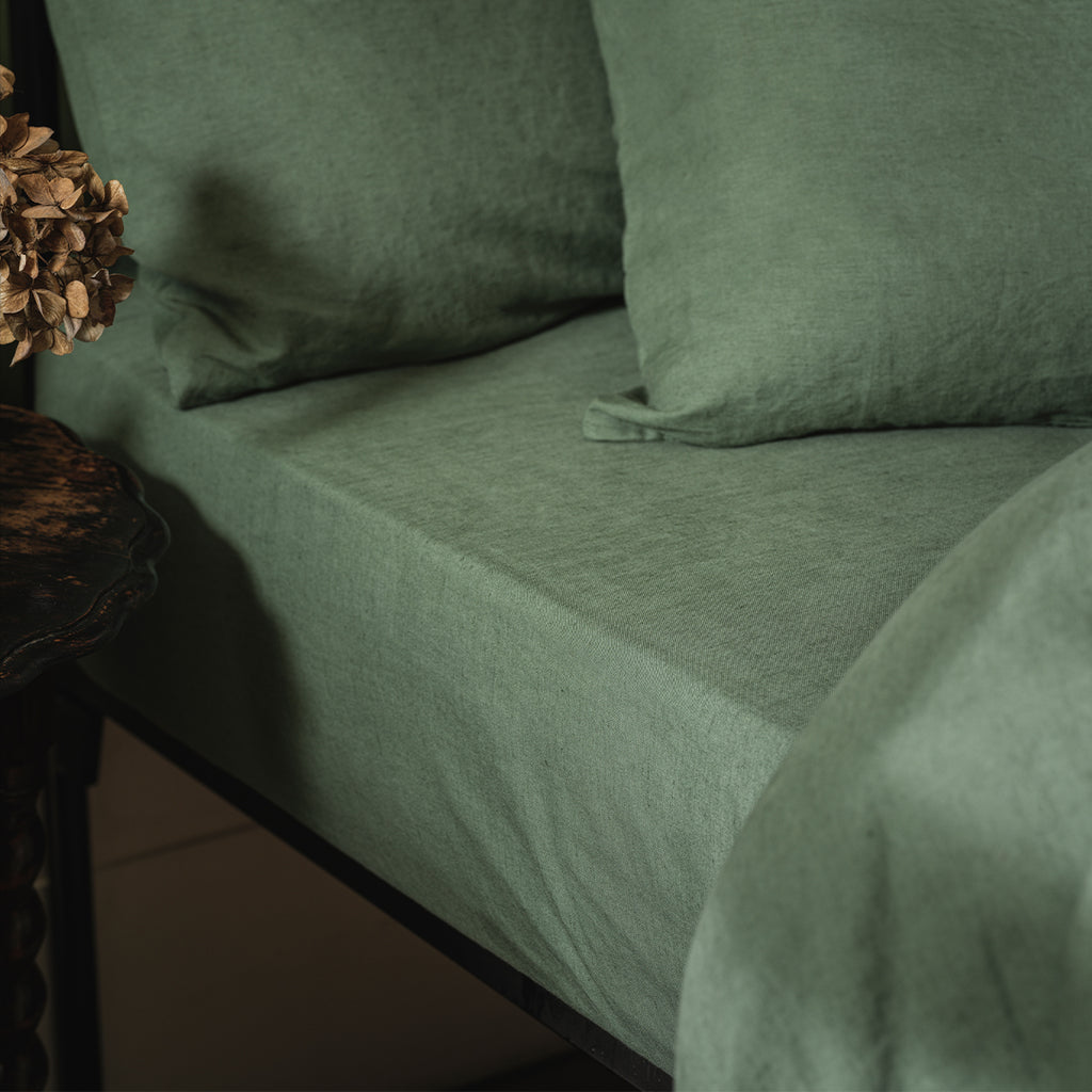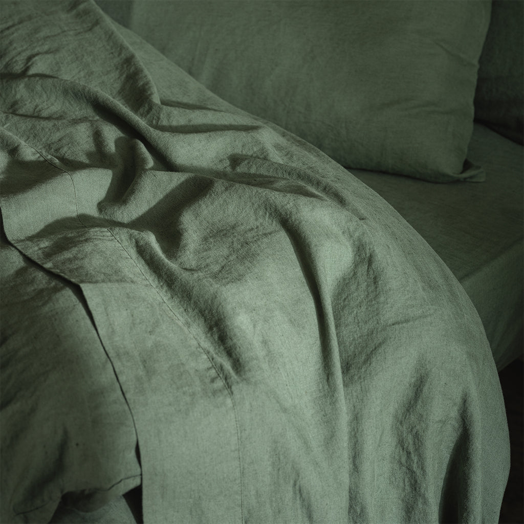 Sage Green 100% Linen Duvet Cover - Piglet in Bed US
