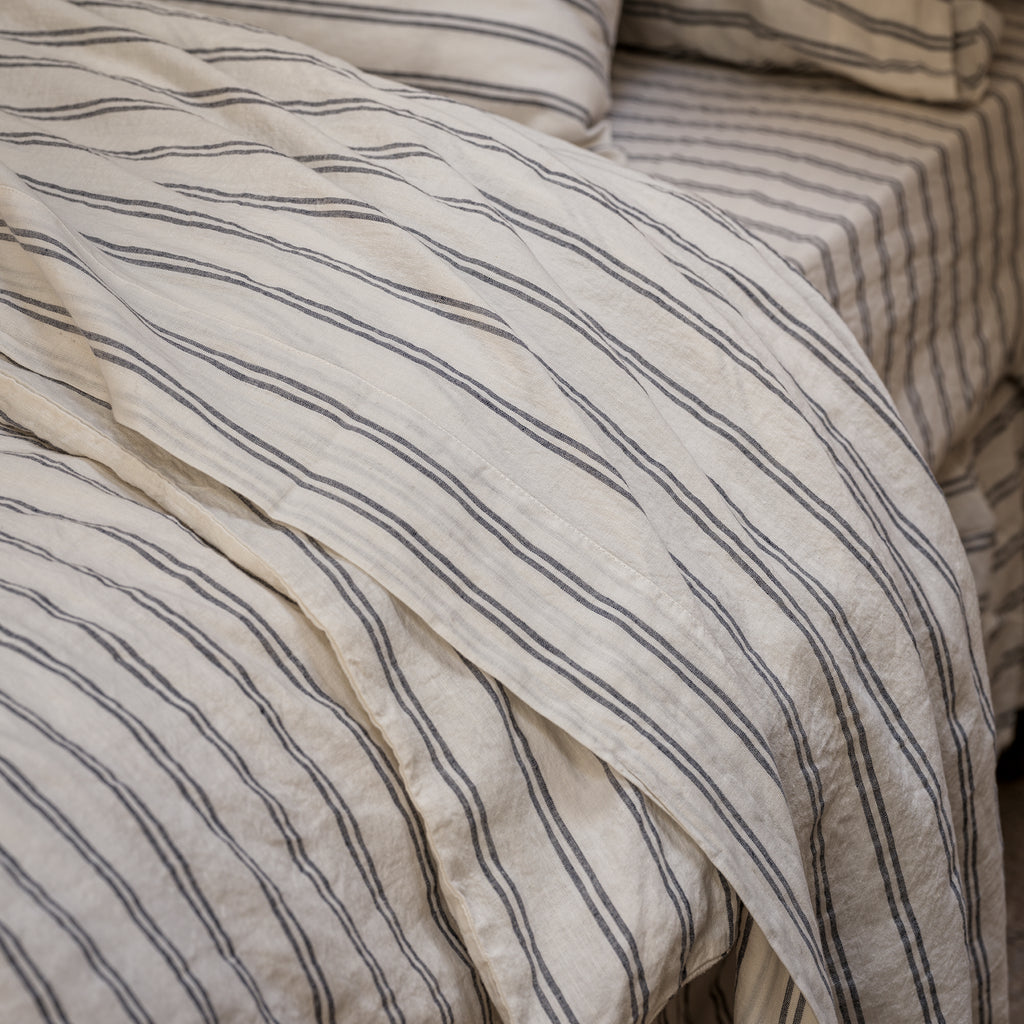 Oatmeal Stripe 100% Linen Duvet Cover - Piglet in Bed US