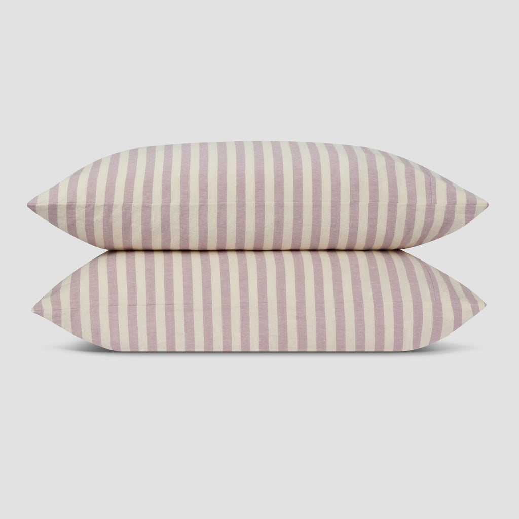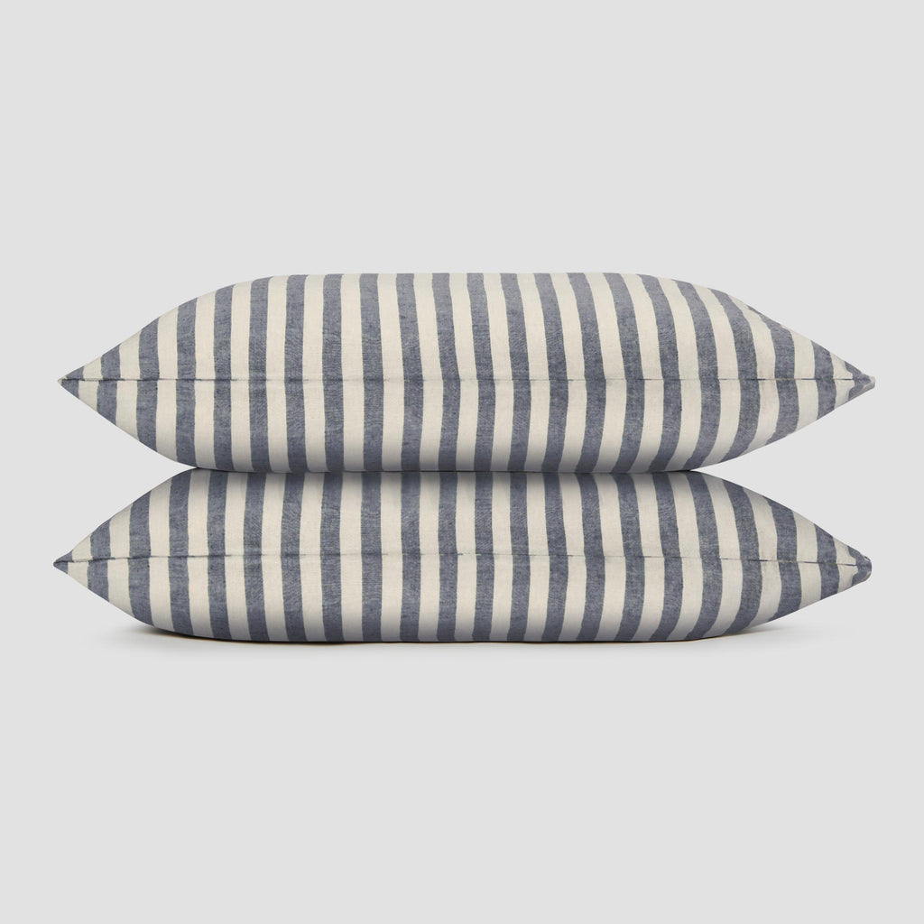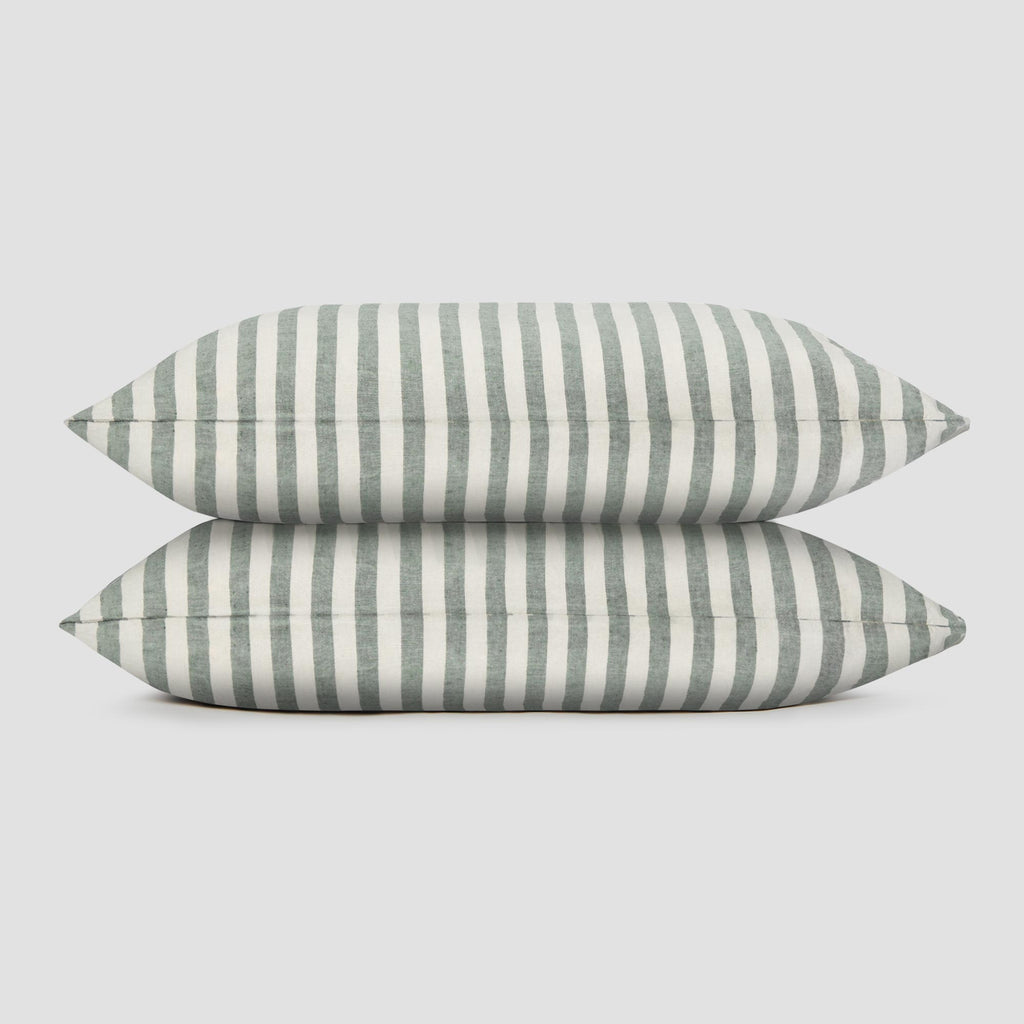 Oatmeal Stripe 100% Linen Pillowcases (Pair) - Piglet in Bed US