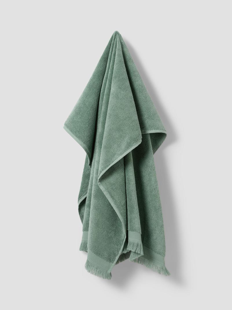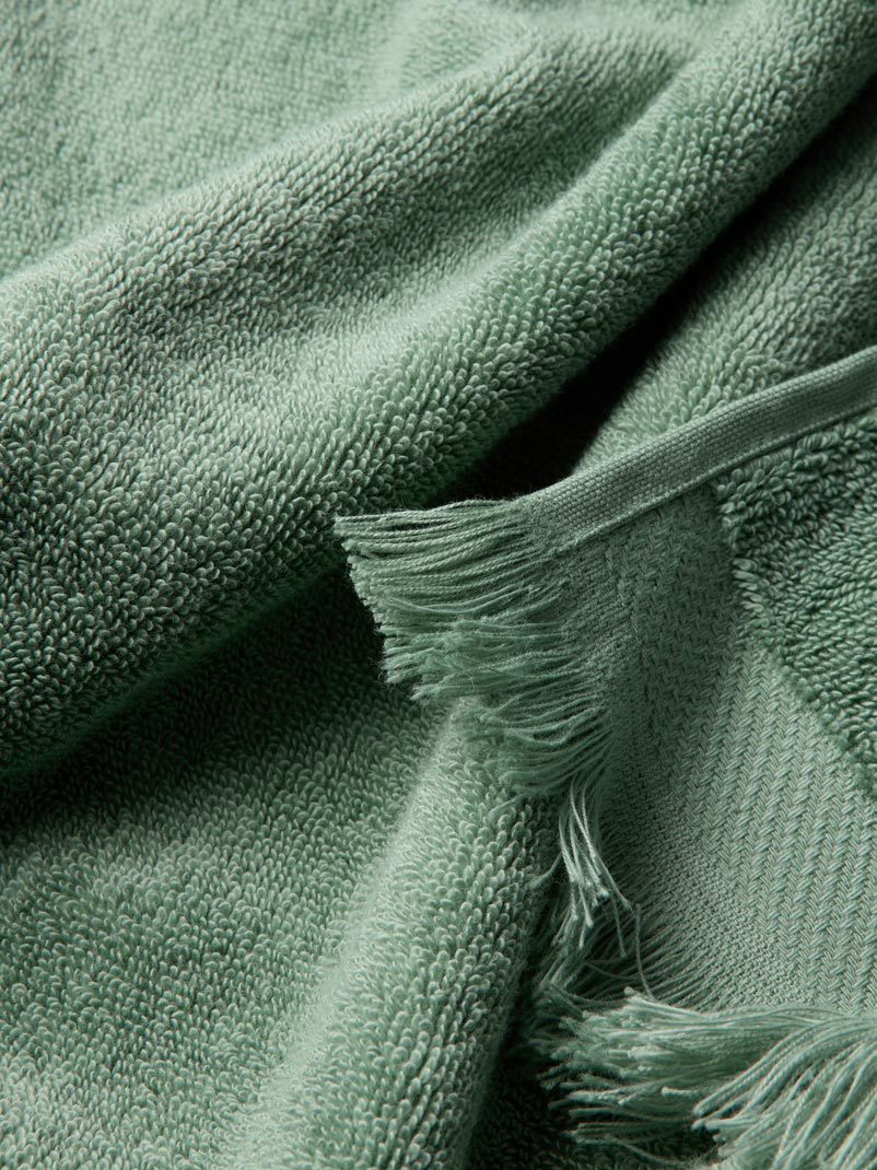 Scrub up well with our irresistibly plush Moss Green Fringe Edge towels. Woven from long-staple, single-yarn cotton, they’re naturally soft and durable, with a delicate fringe edging to finish. Available in three sizes (bath sheets, bath towels, and hand towels), they’re perfect for mixing and matching with other colors and patterns from our collection.