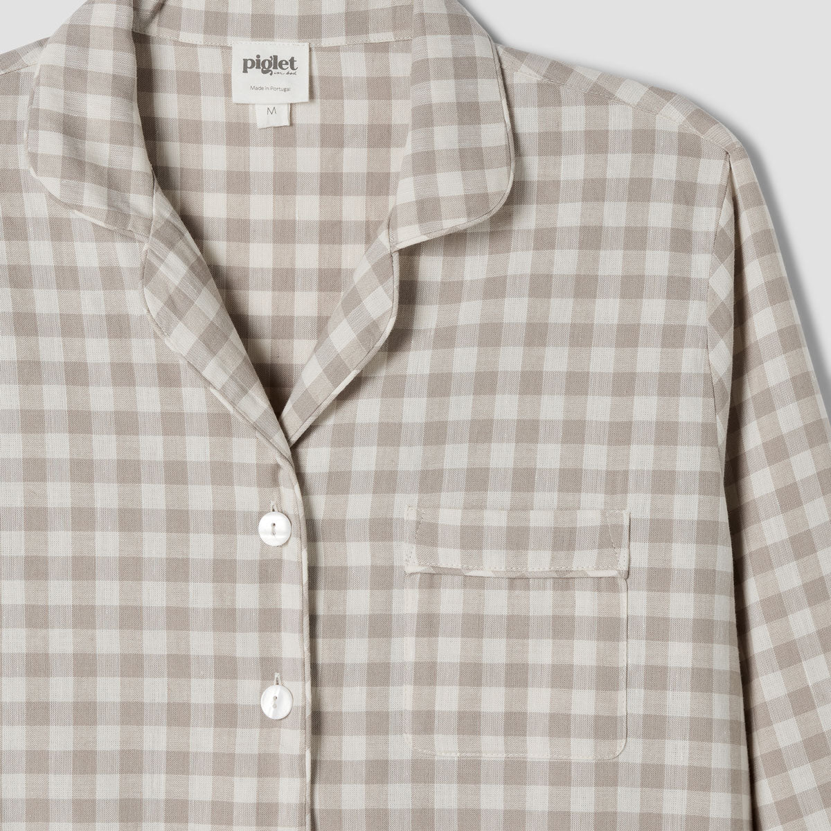 Made for easy, breathable wear, our Mushroom Gingham linen blend pajama trouser set will have you waking up feeling refreshed and ready to seize the day. Combining the laid-back look of linen with the gentle softness of cotton in our beloved gingham pattern, these pajamas are destined to become your new nighttime favorite.