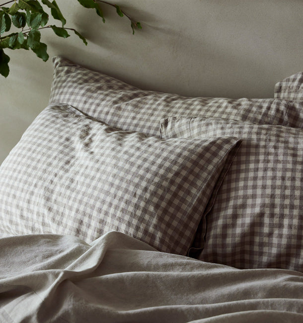 Mushroom Gingham Linen Blend Pajama Set
