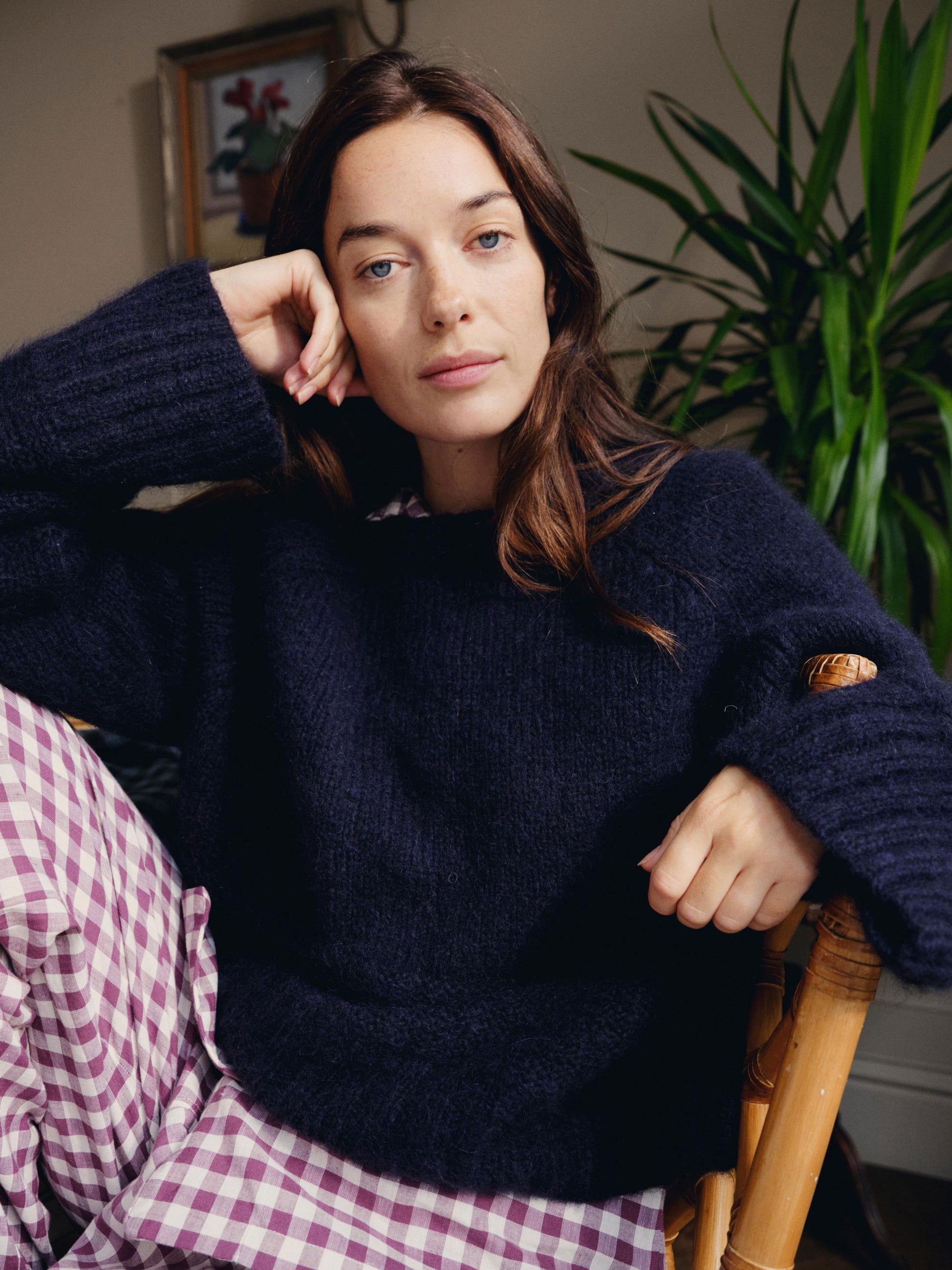 Soft, versatile and effortlessly cozy, this Navy Crew Neck Wool Jumper is a cold-weather staple. With a relaxed silhouette, ribbed trims and a classic crew neckline, it’s perfect for layering over loungewear at home, or styling with jeans and pants for easy, everyday wear.