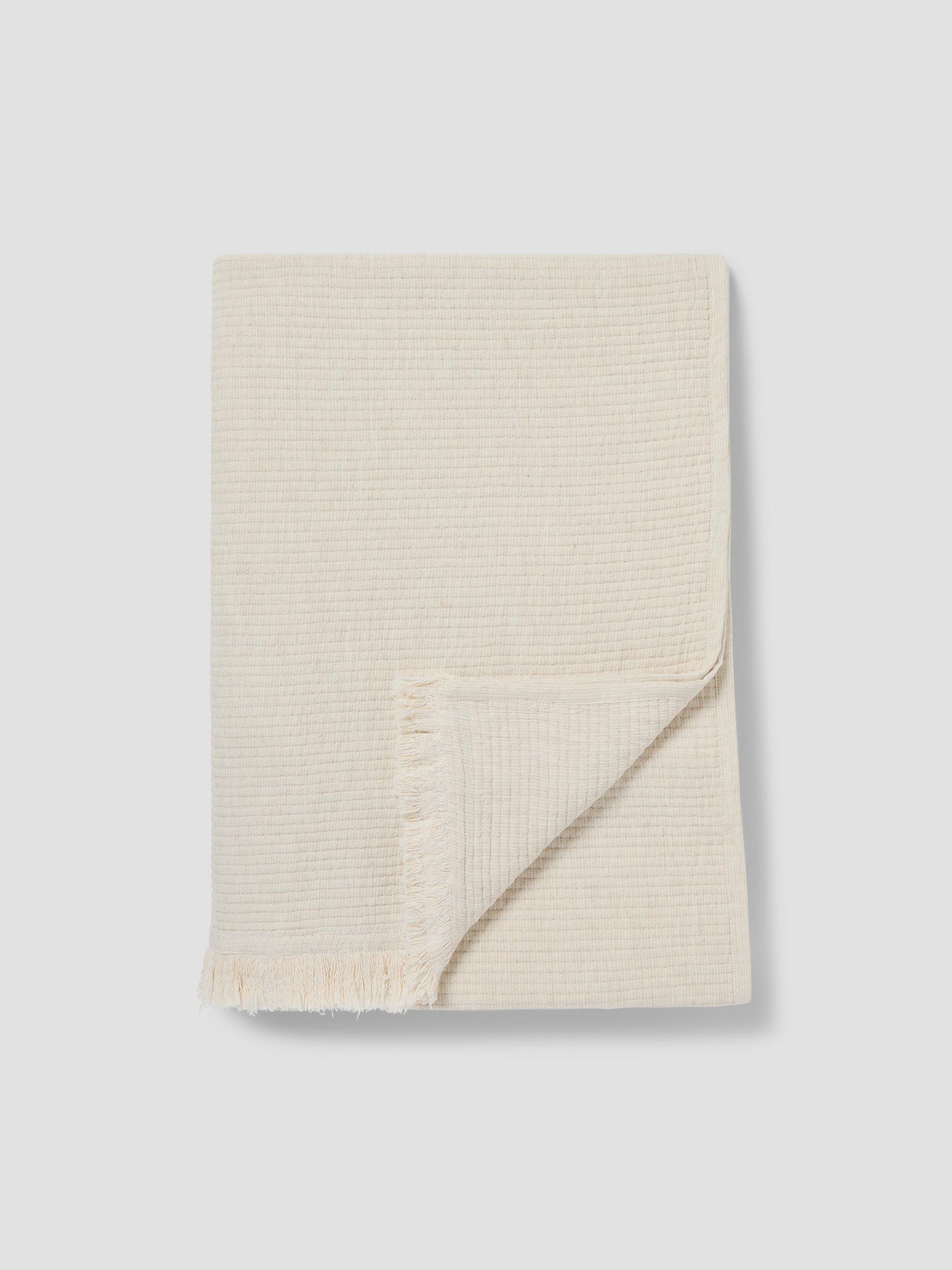 The Oatmeal cotton textured throw is expertly woven with a double-weave design, creating a subtle, ruched texture that offers breathable warmth and a soft finish. Topped off with delicate fringed edges, this throw is perfect for layering on a bed or draping over your favorite armchair.