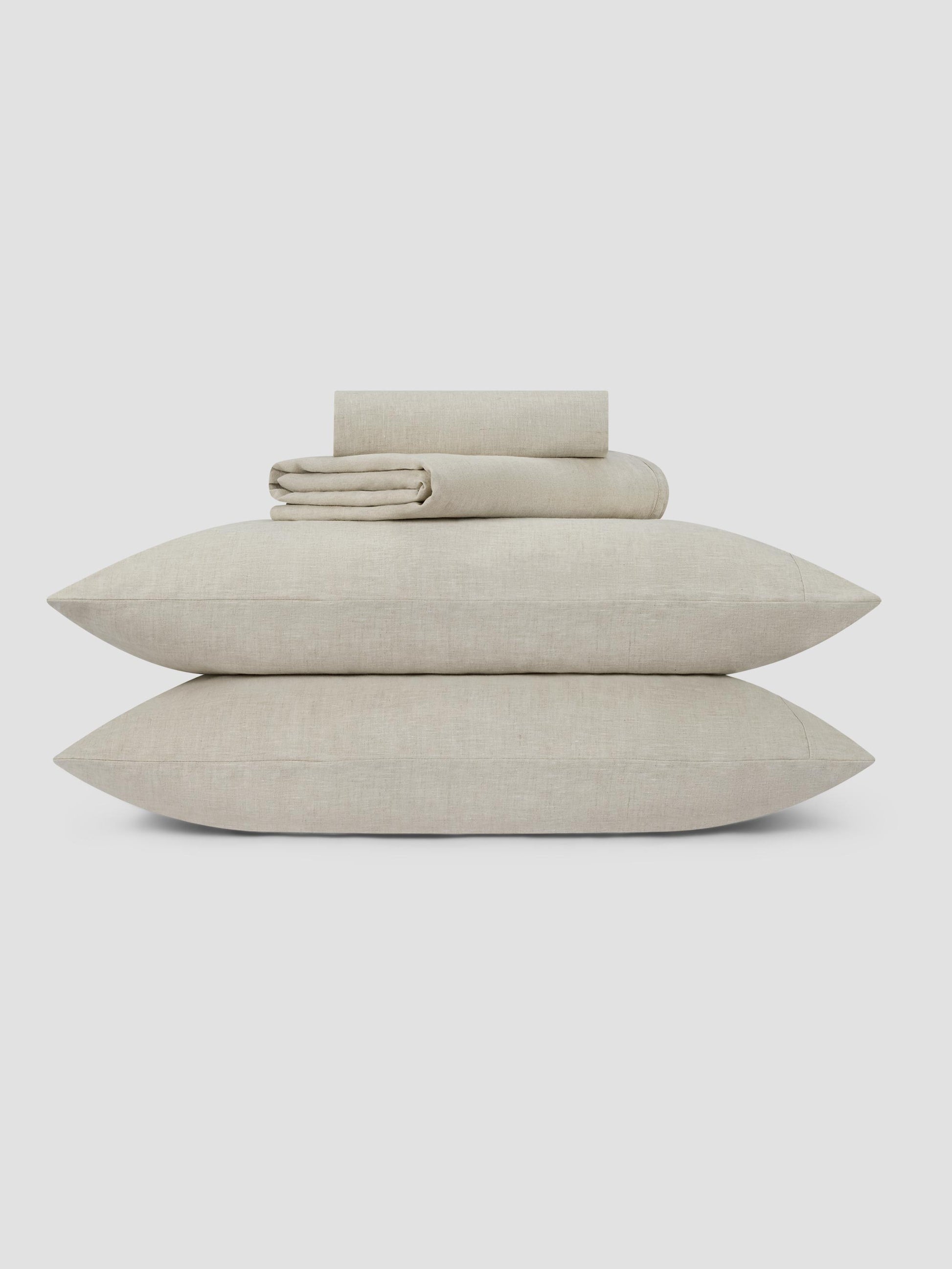 Our Oatmeal linen blend sheet set is the perfect neutral hue for creating a relaxed and soothing space. Made from only the highest-quality fibers, the breathable fabric combines the effortless look of linen with the softness of cotton. Our sheet set includes one pair of pillowcases, one fitted sheet and one flat sheet.