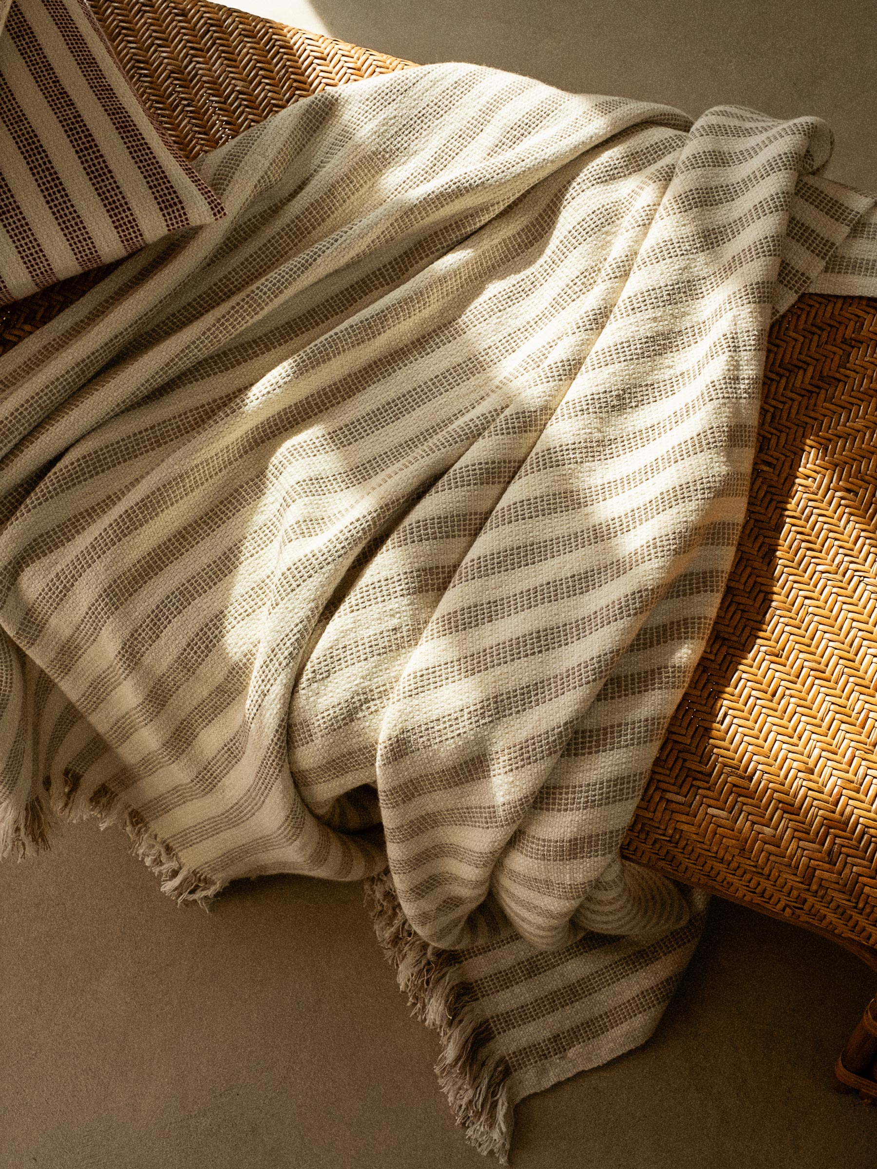 Crafted from a beautiful woven textile inspired by our signature striped design, the Oatmeal Pembroke Stripe throw is the perfect way to add depth and texture to your space. Mix and match with complementary colors from our bedding collections or pair with a decorative cushion to snuggle up on the sofa.