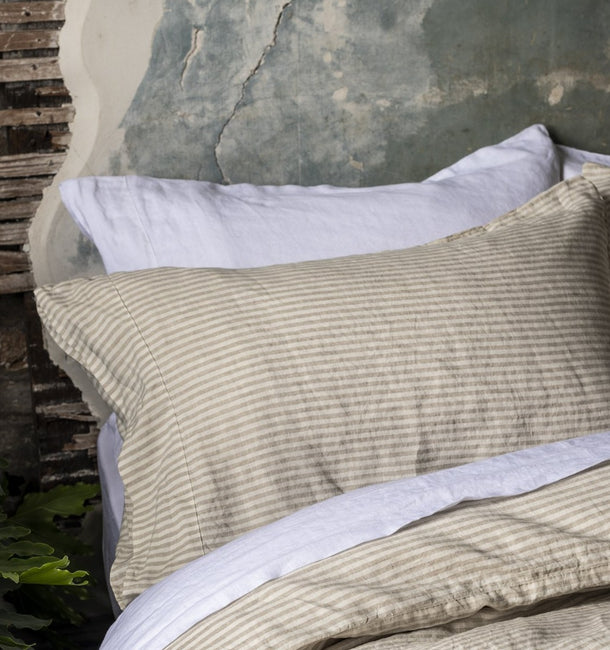 Our pure linen bedding is woven in Guimarães in Northern Portugal from the finest European flax, prized for its breathability, softness, and timeless beauty. Crafted in a family-run mill with over a century of expertise, each piece is steeped in the heritage of their historic hillside city, where rolling vineyards and lush greenery surround the looms. Using OEKO-Tex Standard 100 certified flax, our bedding is designed to be as beautiful to sleep in as it is to wake up to.