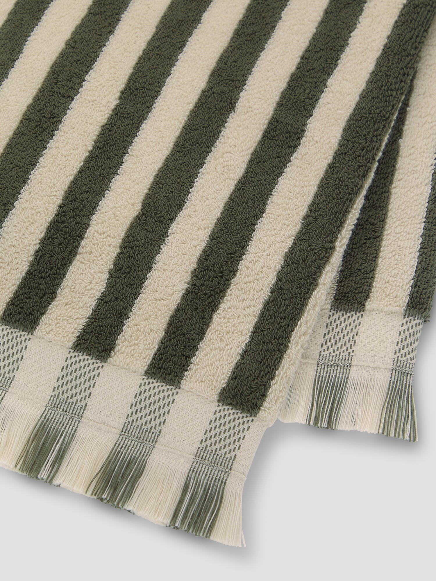Envelope yourself in plush, natural comfort with our Olive Green Pembroke Stripe cotton towels. Made from zero-twist cotton, they’re super soft with a smooth feel, and are finished with a delicate fringe edging. These towels are available in three sizes: bath sheets (39 x 59in), bath towels (27 x 51in) and hand towels (19 x 35in).