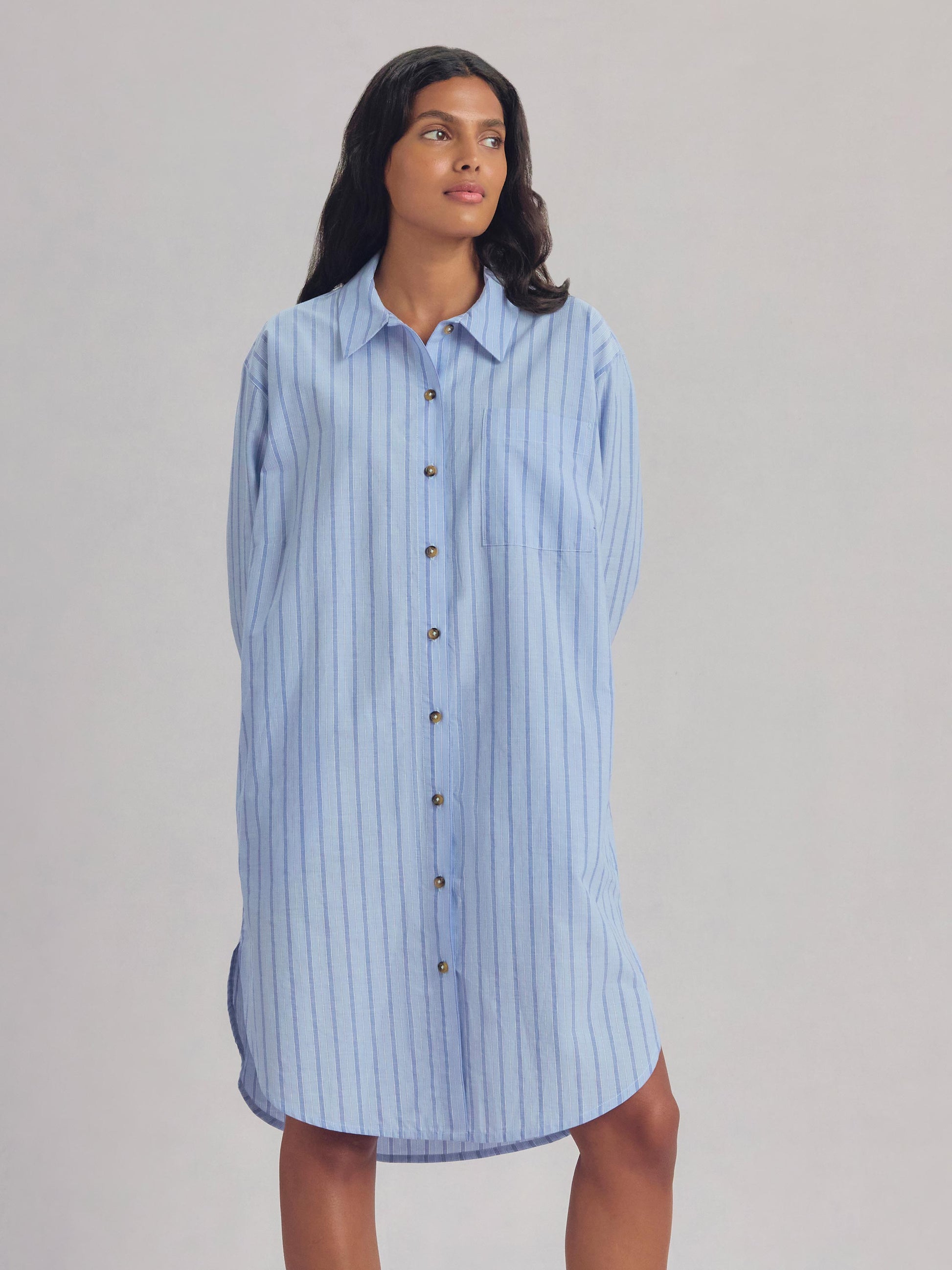 Crafted from 100% prewashed cotton, our Favorite Shirt Stripe nightshirt is naturally soft and breathable for easy, laid-back comfort. Designed with a relaxed fit and timeless silhouette, it’s perfect for lounging at home or pottering in the garden with your morning mug of tea.