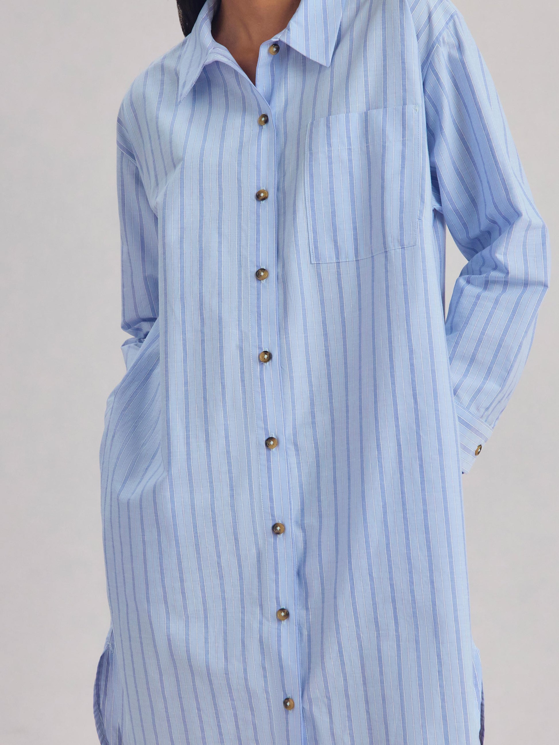 Pale Blue Favorite Shirt Stripe Cotton Nightshirt