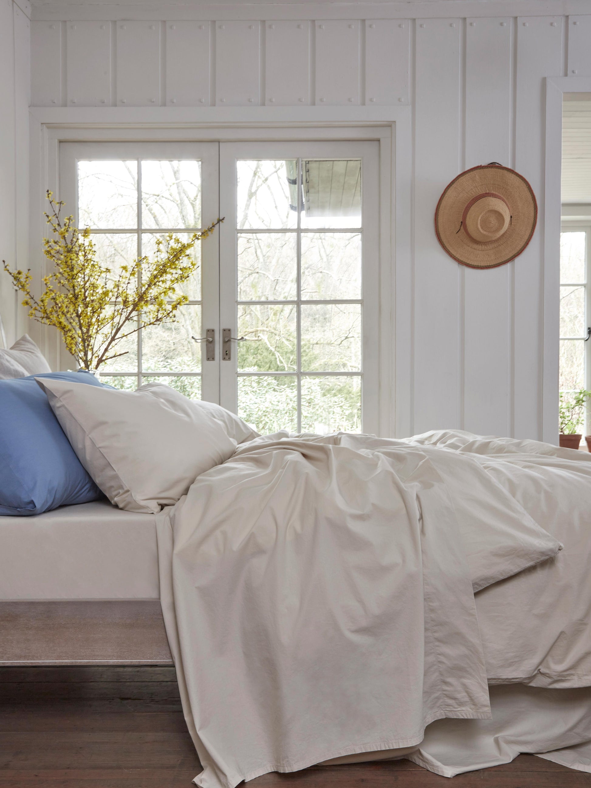 We recommend that you wash your cotton bedding on a warm setting with an appropriate detergent and be sure to separate lights and darks. Air dry or tumble dry on low. Iron for a crisp look or embrace the wrinkles! To avoid big creases without getting the iron out, remove the sheets promptly from the washing machine, give them a couple of good flicks and then air dry. Enjoy reading All About Our Cotton Collection for more information.