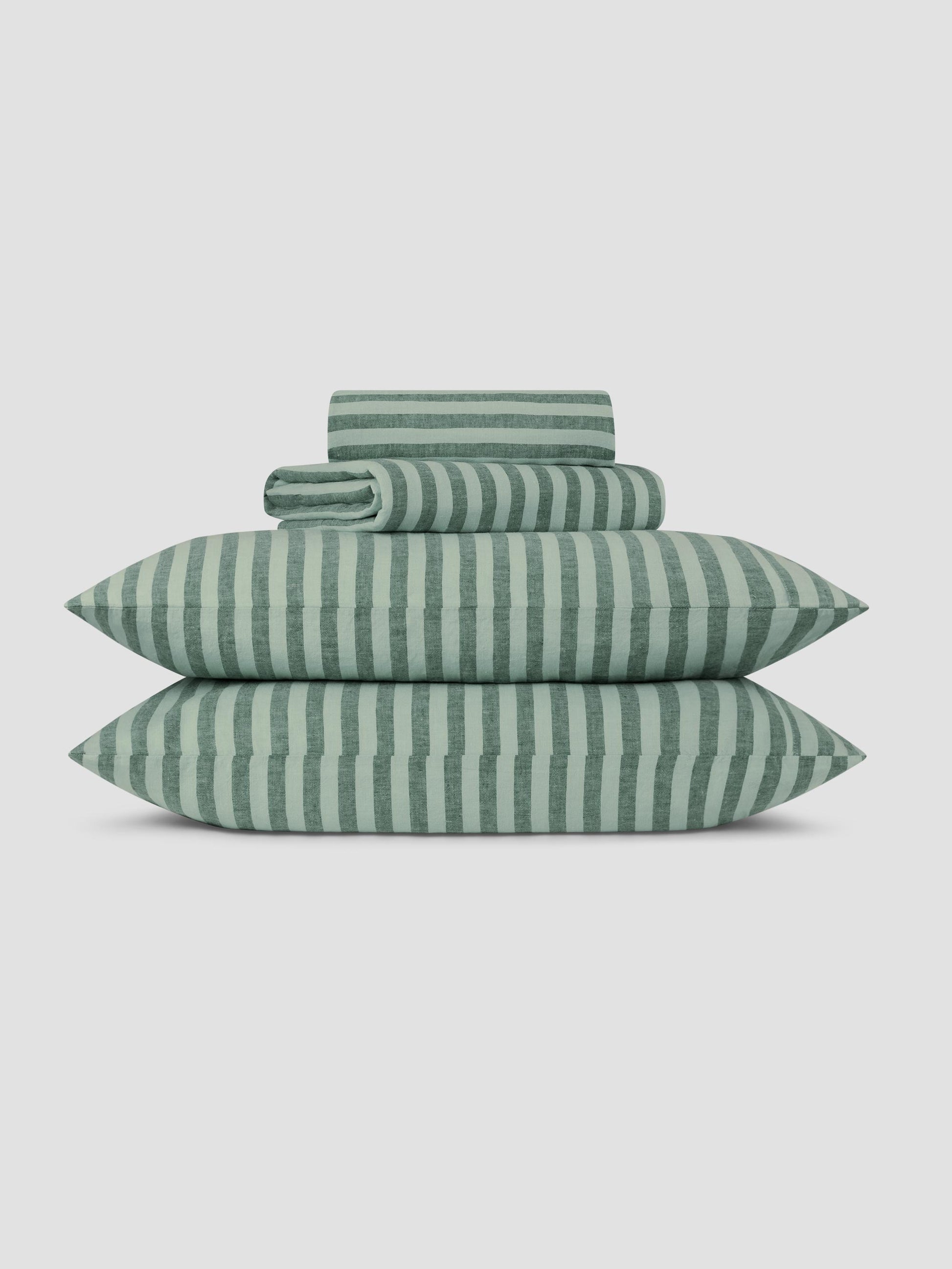 Pine Green Pembroke Stripe Linen Blend Sheet Set