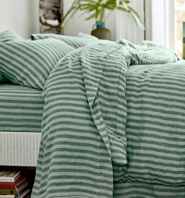 Add a minty-green, coastal touch to your bathroom with our Pine Green Pembroke Stripe cotton towels. Made from sustainably sourced zero-twist cotton, these deck chair-inspired cotton towels weigh 600 gsm, making them long-lasting but super soft. From bathroom to beach, envelop yourself in plush, natural comfort with our boldest collection yet. Our towels are available in four sizes: bath sheets, bath towels, hand towels, and washcloths.