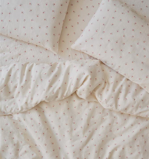 Romantic, whimsical and dotted with delicate flowers, our Posy Bud linen blend sheet set features a reimagined vintage pattern from the Susanna Samson Design archives. Made from only the highest-quality fibers, the breathable fabric combines the effortless look of linen with the softness of cotton. Our duvet set includes one duvet cover and one pair of pillowcases (standard size for twin and queen sets, and king size for king sets).