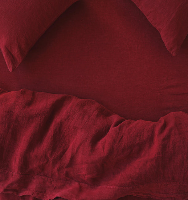 With a rich red hue, our Rhubarb linen blend napkins bring generous helpings of color and comfort to your table. Woven from European flax and long staple cotton, our table linens have a relaxed look and feel with a super-soft finish. Complete your dining table look with the rest of our linen tableware range, including tablecloths and table runners.