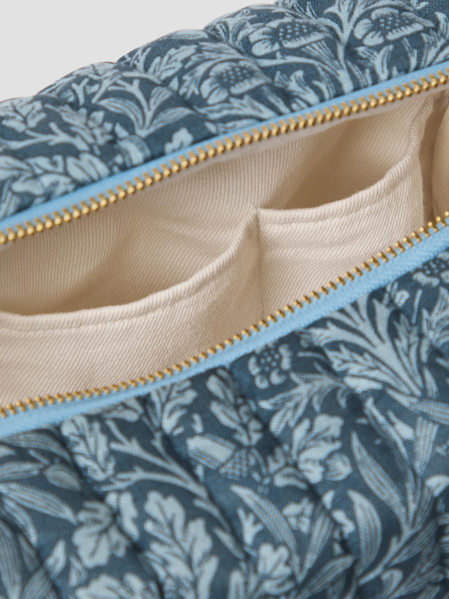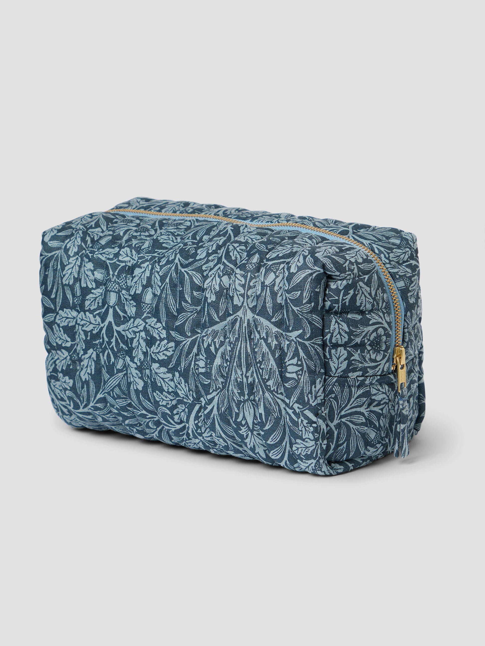Keep your essentials neatly organized at home or on the go with our linen wash bags, thoughtfully crafted from offcuts of our 100% linen River Wandle Pure Acorn fabric from Morris & Co. Perfect for travel or tidying up your bathroom shelf, these wash bags have a quilted design, secure zipper closure and a coated cotton lining for easy cleaning.