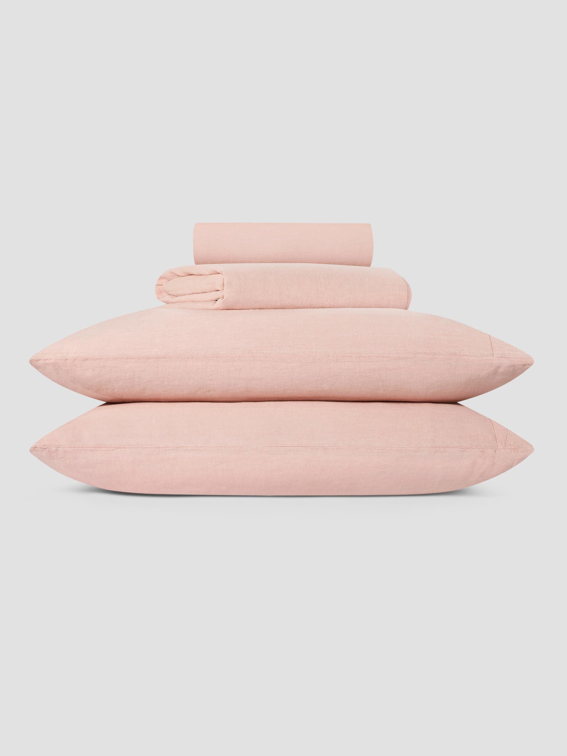 In a soft, muted pink, our Rose linen blend sheet set brings a touch of effortless English charm and a whole lot of calm to your bedroom. Made from only the highest-quality fibers, the breathable fabric combines the effortless look of linen with the softness of cotton. Our linen sheet set includes one pair of pillowcases, one fitted sheet and one flat sheet.