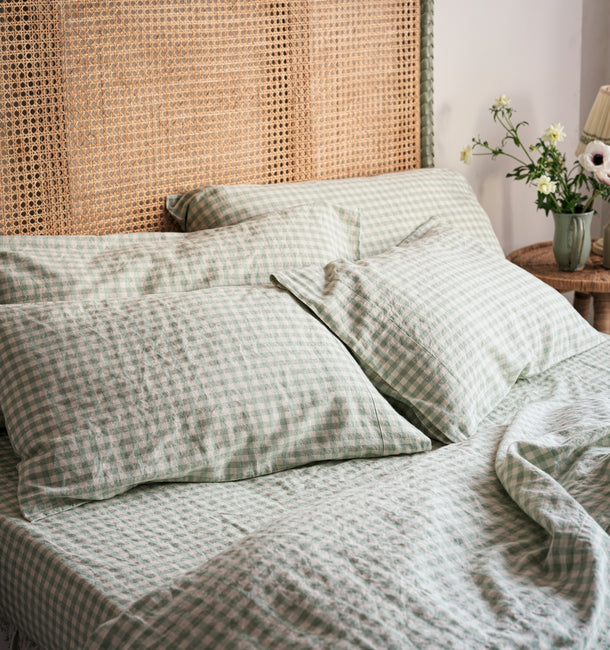 Sage Green Gingham Linen Blend Pillowcase (Pair)