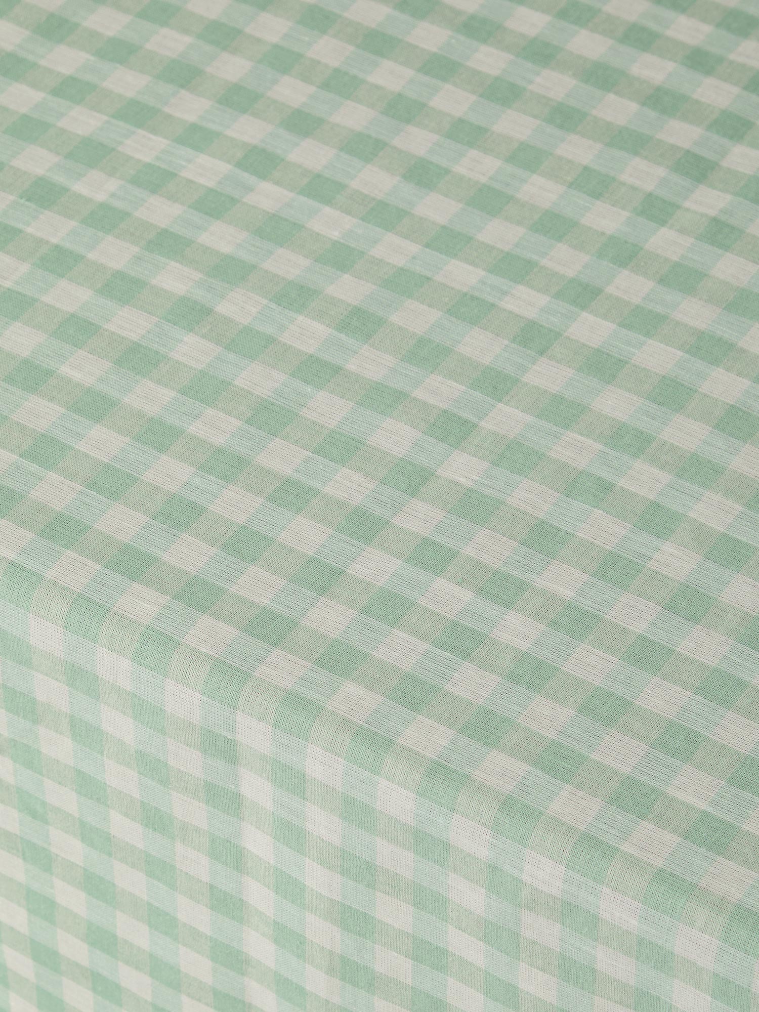 Whether for a weeknight supper or an alfresco lunch with friends, bring some joy to the dinner table with our Sage Green Gingham linen blend tablecloth. Woven from European flax and long staple cotton, our table linens have a relaxed look and feel with a super-soft finish. Our tablecloths are available in three sizes: round (diameter: 83in), medium (59in x 98in) and large (71in x 122in).