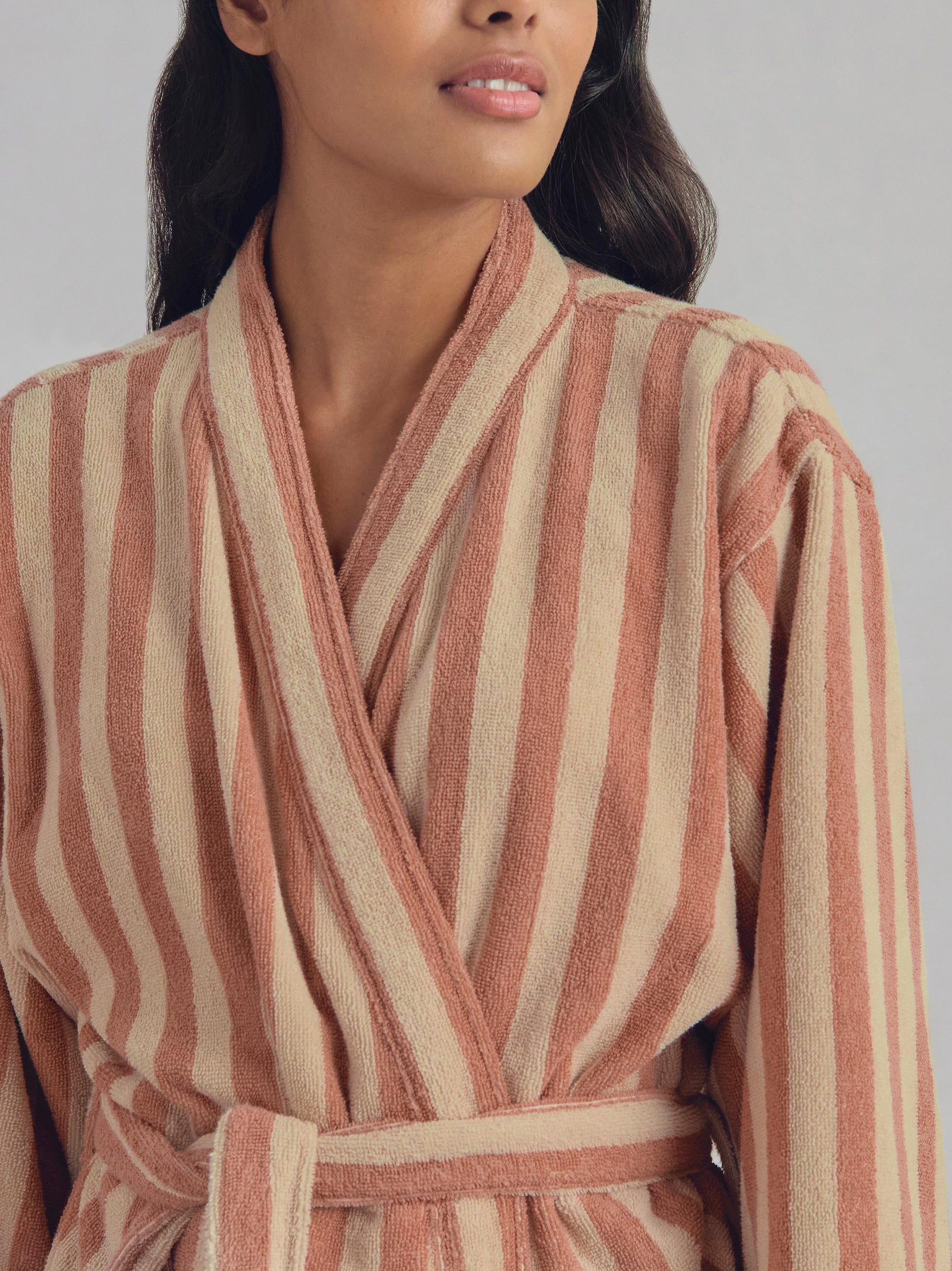 Envelope yourself in plush, natural comfort with our Sand Shell Pembroke Stripe Cotton Robe. Made from sustainably sourced zero-twist cotton, this striped robe is super soft and smooth – just like our best-selling towels. Our striped robes feature handy side pockets, an adjustable waist tie and kimono-inspired sleeves.