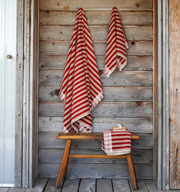 Step out of the bath and onto plush comfort with our Sandstone Red Pembroke Stripe cotton bath mat. Made from sustainably sourced cotton with a luxurious long-loop pile, it’s our thickest mat yet. Super soft and highly absorbent, our striped bath mats measure 20 inches in width and 27.5 inches in length, and feature a practical non-slip backing.