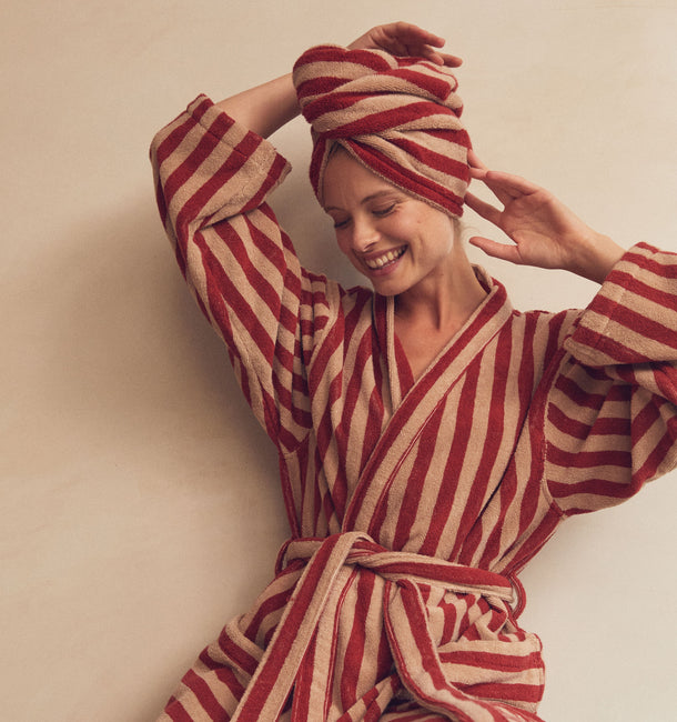 Envelope yourself in plush, natural comfort with our Sandstone Red Pembroke Stripe cotton robe. Made from sustainably sourced zero-twist cotton, this absorbent bath robe is super soft and smooth – just like our best-selling towels. Our striped robes feature handy side pockets and an adjustable waist tie.
