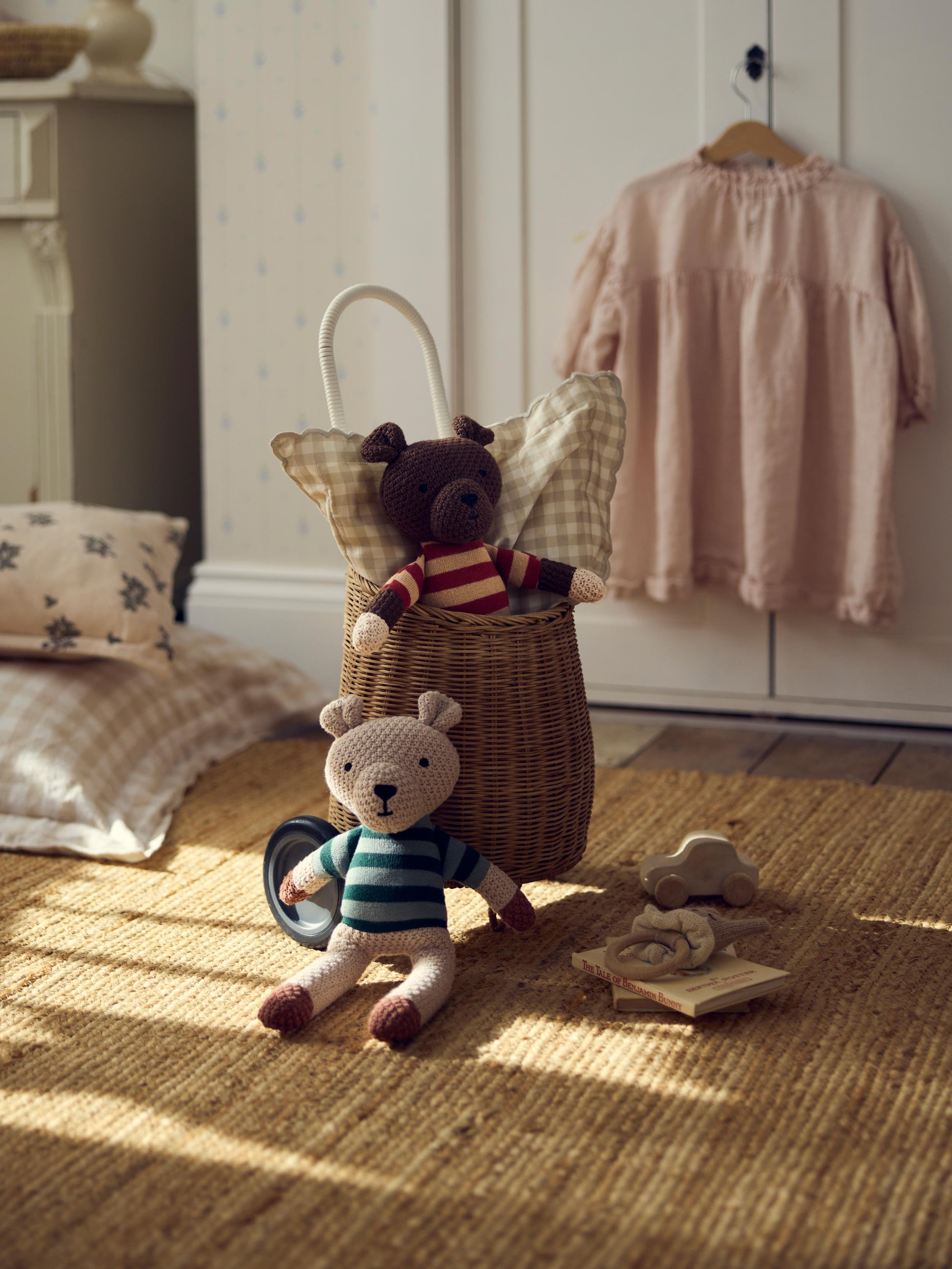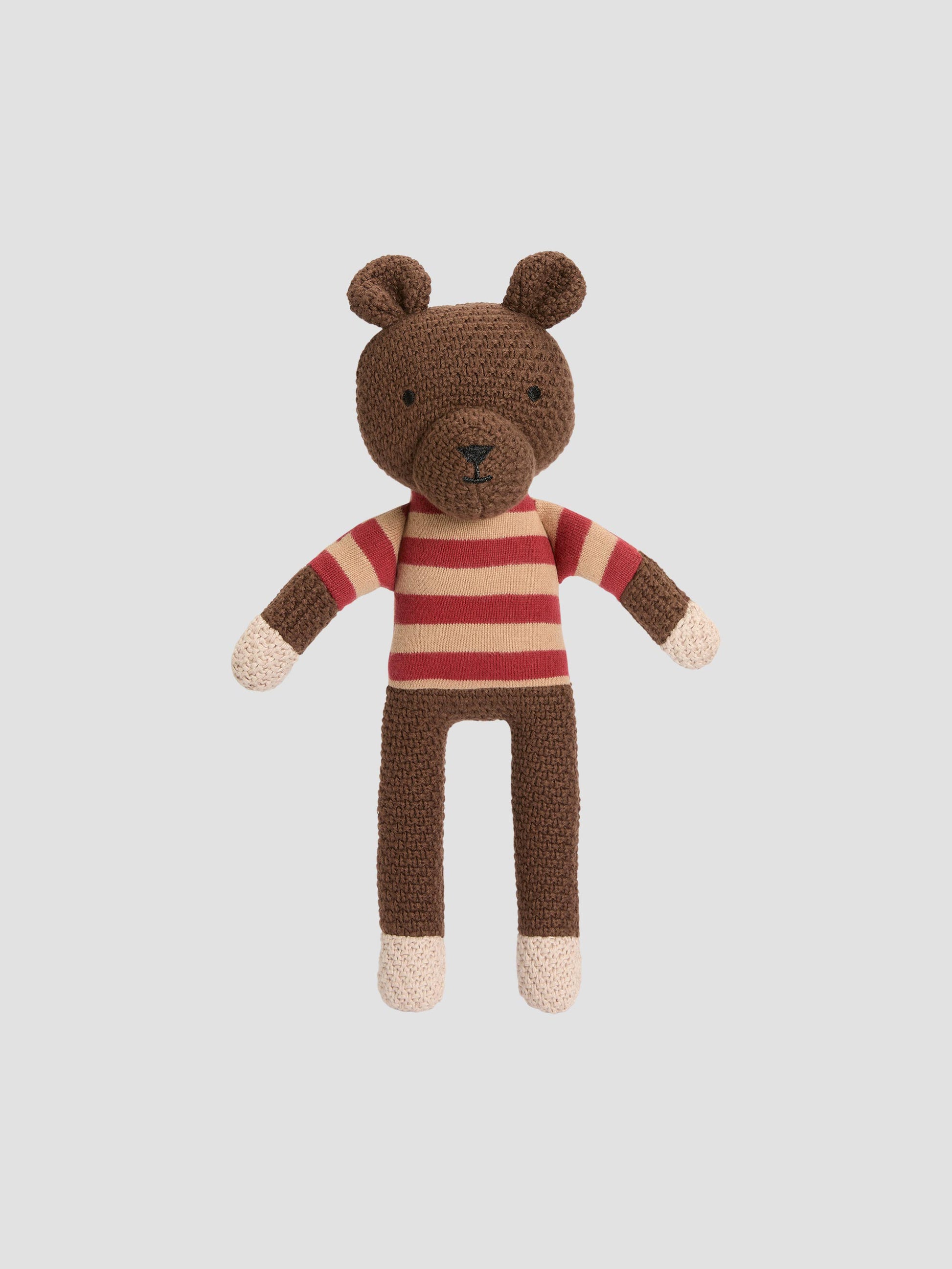 Meet Bennie, the ultimate cuddly companion for little ones! Dressed in a playful Pembroke Stripe jumper, this teddy bear is always ready for everyday adventures or snuggles at home. Crafted from soft, knitted cotton and hand embroidered with love, slight variations make each Bennie bear unique.